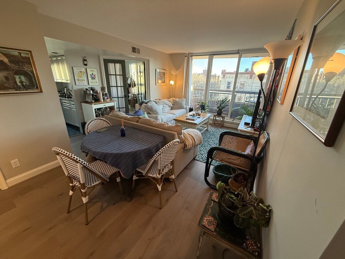 Light-filled, south- and east-facing corner unit in the best neighborhood in Washington D.C., Dupont Circle. 2 bed/1bathroom, great for a couple or pair of friends. Immediate access to 17th Street restaurant, cafe, and bar scene and less than 5 minute walk to the Red Line of the DC Metro. Parking space included in the overall rent. Electric, WiFi, and TV at renters' expense. Recent improvements include a newly installed HVAC system, new dishwasher, new wall paint, and new hardwood flooring. Unit rented directly by friendly owner who is committed to make this a pleasant and easy rental experience. GARAGE PARKING included. Unit is UNFURNISHED but shown as currently rented.