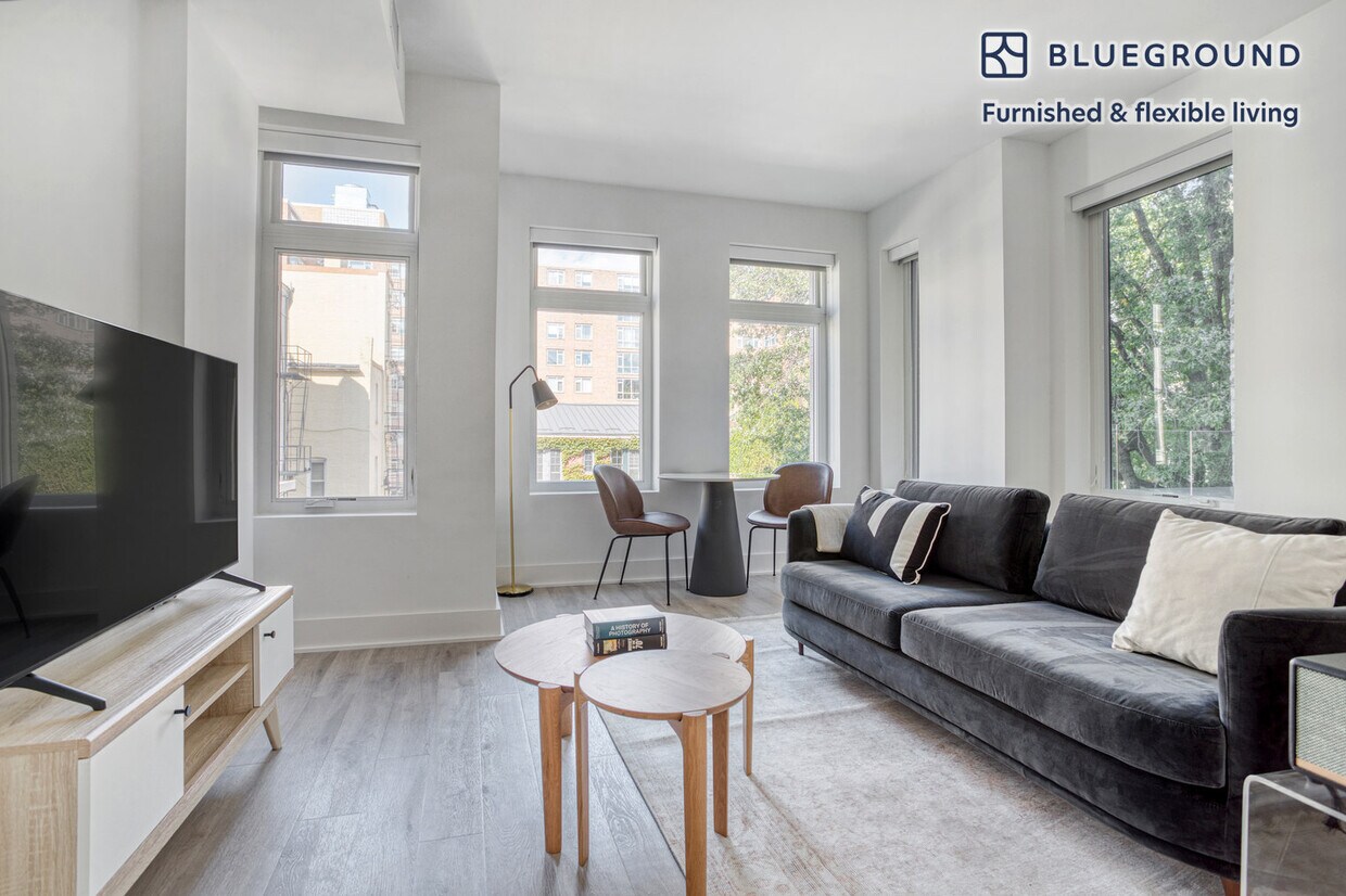 Show up and start living from day one in Washington, D.C. with this stylish one bedroom Blueground apartment. You’ll love coming home to this thoughtfully furnished, beautifully designed, and fully equipped Dupont Circle home with stunning views over the city. (ID #WDC324) The advertised rate of $3,450/month is the lowest available price, based on a 12 month(s) stay with a move-in date of March 4, 2026. Rates vary depending on the duration of stay, season, and other parameters. For exact pricing and additional pricing components, please visit our website and enter your desired move-in and move-out dates. The rate is applicable when billed upfront; it can be higher if billed in multiple payments. Brokers are welcome to reach out. Were you looking for an unfurnished lease? Try Blueground instead and upgrade from unfurnished to furnished living: - Furnished at rates comparable to unfurnished - No setup or furniture costs - save thousands - Move-in ready - save time, just bring your suitcase Designed with you in mind Gorgeous furniture, fully equipped kitchen, smart TV, and a premium wireless speaker are just a few of the amenities you’ll find inside this one bedroom apartment. Ideally located in Washington, D.C., you’ll find a lot to love outside as well. When you’re ready to relax, you’ll be happy to discover every Blueground bedroom comes with superior quality mattresses, fully stocked linens, and cozy towels. We handle everything so you can simply show up and start living. This apartment also offers in-apartment laundry. Sleeping arrangements Queen Bed, 63in/160cm Amenities Building amenities unique to this one bedroom apartment include an on-site: - Dryer - Elevator - Washing machine - Pets allowed - Rooftop BBQ Arrival and ongoing support The entire apartment is yours to enjoy! Throughout your stay, you’ll have access to our Client Experience team through the Blueground App. You can schedule additional cleanings, submit maintenance requests, and view our neighborhood recommendations with just a few taps. We’ll share all details upon confirmation of your stay. Ideally Located This apartment for rent in Dupont Circle invites you to explore DC's most beautiful neighborhood. Old-World townhouses blend harmoniously with condos and modern apartments, only 13 minutes away from Union Station by car and train. Passing through the inner ring of Dupont Circle is Massachusetts Avenue, known for its grand mansions and embassies. Widely popular for its bohemian and alternative scene, Dupont Circle maintains all the conveniences of urban living and a mix of popular galleries and fine dining. A bicycle will come in hand when exploring this bike- and pedestrian-friendly neighborhood with numerous green spaces for a quiet afternoon. Other things to note Building amenities may have an extra cost. This Blueground apartment has flexible lease options, allowing you to book it for one month, a year, or more. Pets are welcome, though weight limits and breed restrictions apply and may incur fees. We take great pride in ensuring every photo displayed is shot in our own units with our actual furnishings. That said, we regularly refresh our decor and furniture arrangement, which may differ from what’s pictured. [GO]
