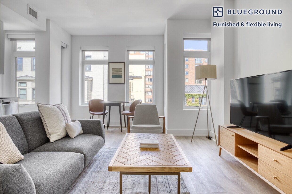 Feel at home wherever you choose to live with Blueground. You’ll love this lovely Dupont Circle furnished one bedroom apartment with its modern decor, fully equipped kitchen, and roomy living room with great views. Ideally located, you’re close to all the best that Washington, D.C. has to offer! (ID #WDC323) The advertised rate of $3,850/month is the lowest available price, based on a 2 month(s) and 9 day(s) stay with a move-in date of July 20, 2026. If you’re looking for a 1-year stay, the rate is $3,780/month. Rates vary depending on the duration of stay, season, and other parameters. For exact pricing and additional pricing components, please visit our website and enter your desired move-in and move-out dates. The rate is applicable when billed upfront; it can be higher if billed in multiple payments. Brokers are welcome to reach out. Were you looking for an unfurnished lease? Try Blueground instead and upgrade from unfurnished to furnished living: - Furnished at rates comparable to unfurnished - No setup or furniture costs - save thousands - Move-in ready - save time, just bring your suitcase Designed with you in mind Thoughtfully designed with bespoke finishes, modern furnishings, and a fully equipped kitchen, you’ll enjoy that “I’m home” feeling with this Blueground apartment. Whether you’re lounging in your cozy living room streaming the latest and greatest entertainment on the smart TV or premium wireless speaker, or getting some well-earned rest on the superior quality mattress with fully stocked linens, you’ll fall in love with everything this Dupont Circle apartment has to offer. This apartment also offers in-apartment laundry. Sleeping arrangements King Bed, 70.8in/180cm Amenities Building amenities unique to this one bedroom apartment include an on-site: - Dryer - Elevator - Washing machine - Pets allowed - Rooftop BBQ Arrival and ongoing support The entire apartment is yours to enjoy! Throughout your stay, you’ll have access to our Client Experience team through the Blueground App. You can schedule additional cleanings, submit maintenance requests, and view our neighborhood recommendations with just a few taps. We’ll share all details upon confirmation of your stay. Ideally Located This apartment for rent in Dupont Circle invites you to explore DC's most beautiful neighborhood. Old-World townhouses blend harmoniously with condos and modern apartments, only 13 minutes away from Union Station by car and train. Passing through the inner ring of Dupont Circle is Massachusetts Avenue, known for its grand mansions and embassies. Widely popular for its bohemian and alternative scene, Dupont Circle maintains all the conveniences of urban living and a mix of popular galleries and fine dining. A bicycle will come in hand when exploring this bike- and pedestrian-friendly neighborhood with numerous green spaces for a quiet afternoon. Other things to note Building amenities may have an extra cost. This Blueground apartment has flexible lease options, allowing you to book it for one month, a year, or more. Pets are welcome, though weight limits and breed restrictions apply and may incur fees. We take great pride in ensuring every photo displayed is shot in our own units with our actual furnishings. That said, we regularly refresh our decor and furniture arrangement, which may differ from what’s pictured. [SI]