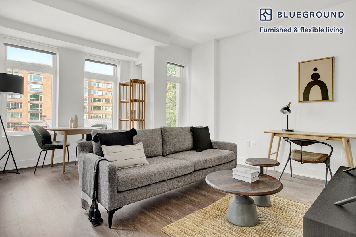 Discover the best of Washington, D.C., with this one bedroom apartment in Dupont Circle with views over the city. It’ll be easy to simply show up and start living in this furnished apartment with its fully equipped kitchen, living room, and our dedicated, on-the-ground support. (ID #WDC298) The advertised rate of $3,910/month is the lowest available price, based on a 6 month(s) and 14 day(s) stay with a move-in date of September 19, 2029. If you’re looking for a 1-year stay, the rate is $4,090/month. Rates vary depending on the duration of stay, season, and other parameters. For exact pricing and additional pricing components, please visit our website and enter your desired move-in and move-out dates. The rate is applicable when billed upfront; it can be higher if billed in multiple payments. Brokers are welcome to reach out. Were you looking for an unfurnished lease? Try Blueground instead and upgrade from unfurnished to furnished living: - Furnished at rates comparable to unfurnished - No setup or furniture costs - save thousands - Move-in ready - save time, just bring your suitcase Designed with you in mind Gorgeous furniture, fully equipped kitchen, smart TV, and a premium wireless speaker are just a few of the amenities you’ll find inside this one bedroom apartment. Ideally located in Washington, D.C., you’ll find a lot to love outside as well. When you’re ready to relax, you’ll be happy to discover every Blueground bedroom comes with superior quality mattresses, fully stocked linens, and cozy towels. We handle everything so you can simply show up and start living. This apartment also offers in-apartment laundry. Sleeping arrangements King Bed, 70.8in/180cm Amenities Building amenities unique to this one bedroom apartment include an on-site: - Dryer - Elevator - Washing machine - Pets allowed - Rooftop BBQ Arrival and ongoing support The entire apartment is yours to enjoy! Throughout your stay, you’ll have access to our Client Experience team through the Blueground App. You can schedule additional cleanings, submit maintenance requests, and view our neighborhood recommendations with just a few taps. We’ll share all details upon confirmation of your stay. Ideally Located This apartment for rent in Dupont Circle invites you to explore DC's most beautiful neighborhood. Old-World townhouses blend harmoniously with condos and modern apartments, only 13 minutes away from Union Station by car and train. Passing through the inner ring of Dupont Circle is Massachusetts Avenue, known for its grand mansions and embassies. Widely popular for its bohemian and alternative scene, Dupont Circle maintains all the conveniences of urban living and a mix of popular galleries and fine dining. A bicycle will come in hand when exploring this bike- and pedestrian-friendly neighborhood with numerous green spaces for a quiet afternoon. Other things to note Building amenities may have an extra cost. This Blueground apartment has flexible lease options, allowing you to book it for one month, a year, or more. Pets are welcome, though weight limits and breed restrictions apply and may incur fees. We take great pride in ensuring every photo displayed is shot in our own units with our actual furnishings. That said, we regularly refresh our decor and furniture arrangement, which may differ from what’s pictured. [SI]