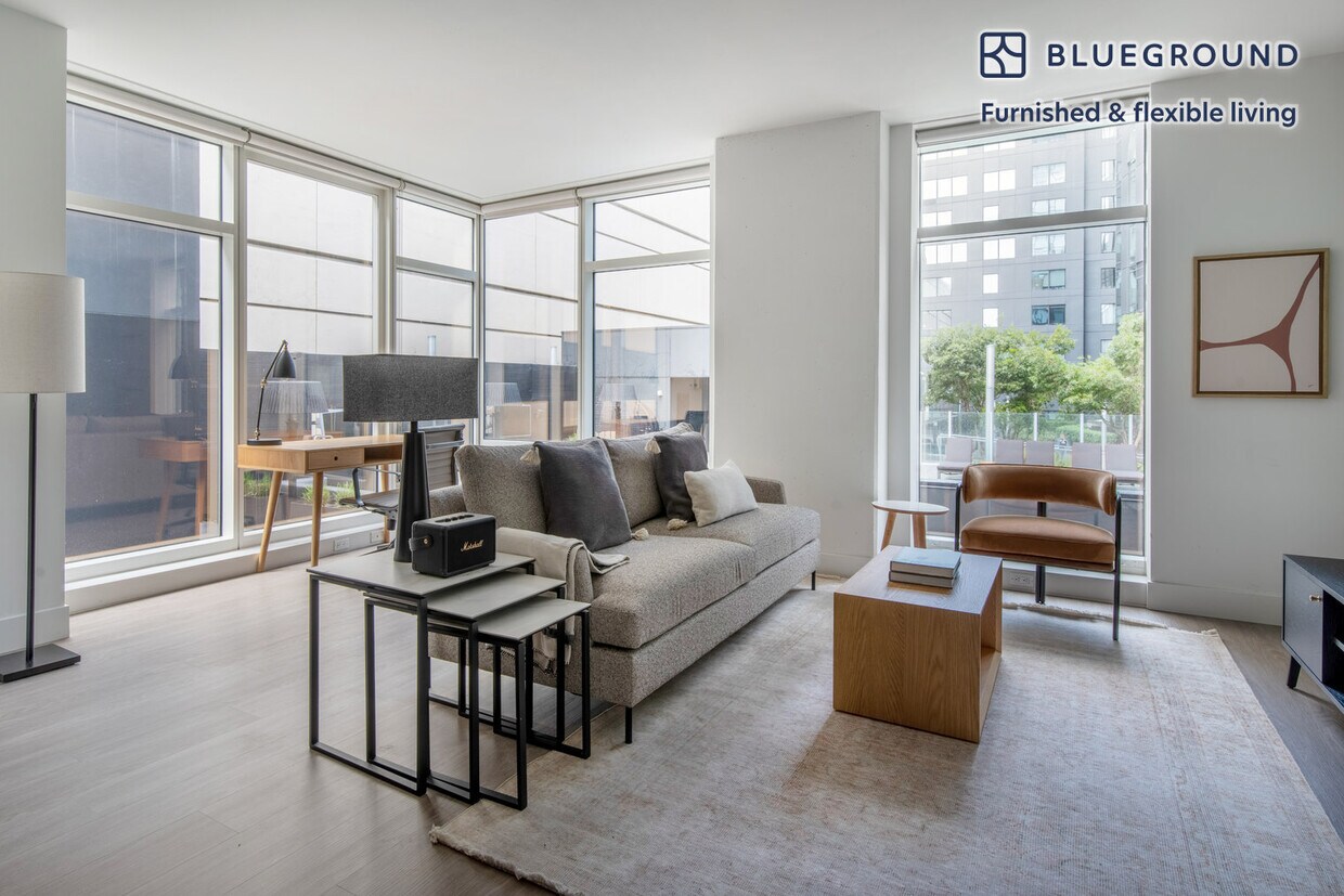 Show up and start living from day one in San Francisco with this stylish one bedroom Blueground apartment. You’ll love coming home to this thoughtfully furnished, beautifully designed, and fully equipped SoMa home. (ID #SFO1300) The advertised rate of $4,940/month is the lowest available price, based on a 12 month(s) stay with a move-in date of April 3, 2026. Rates vary depending on the duration of stay, season, and other parameters. For exact pricing and additional pricing components, please visit our website and enter your desired move-in and move-out dates. The rate is applicable when billed upfront; it can be higher if billed in multiple payments. Brokers are welcome to reach out. Were you looking for an unfurnished lease? Try Blueground instead and upgrade from unfurnished to furnished living: - Furnished at rates comparable to unfurnished - No setup or furniture costs - save thousands - Move-in ready - save time, just bring your suitcase Designed with you in mind As with any Blueground apartment, you’ll find a thoughtfully designed space complete with beautiful furniture and a fully equipped kitchen in this one bedroom property. And, thanks to our superior quality mattresses, fully stocked linens, and towels, you can relax knowing you’ll always feel comfortably at home. When you’re ready for some fun, you can take in the San Francisco vibes or bring the entertainment to you with the premium wireless speaker or smart TV. This apartment also offers in-apartment laundry. Sleeping arrangements King Bed, 70.8in/180cm Amenities Building amenities unique to this one bedroom apartment include an on-site: - BBQ Area - Doorman - Dryer - Elevator - Swimming pool - Washing machine - Lounge - Parking - Pets allowed - Playground Arrival and ongoing support The entire apartment is yours to enjoy! Throughout your stay, you’ll have access to our Client Experience team through the Blueground App. You can schedule additional cleanings, submit maintenance requests, and view our neighborhood recommendations with just a few taps. We’ll share all details upon confirmation of your stay. Ideally Located This furnished apartment is located in South of Market, known as SoMa. A trendy, urban district, famous for its excellent art and museum scene. Home to a diverse mix of entrepreneurs and young families, this neighborhood offers hip bars, fine dinings and delicious coffee. Don’t miss the plethora of museums, including a visit to the San Francisco Modern Museum of Art. Baseball lovers frequently visit SoMa, as it is also home to the San Francisco Giants. Other things to note Building amenities may have an extra cost. This Blueground apartment has flexible lease options, allowing you to book it for one month, a year, or more. Pets are welcome, though weight limits and breed restrictions apply and may incur fees. We take great pride in ensuring every photo displayed is shot in our own units with our actual furnishings. That said, we regularly refresh our decor and furniture arrangement, which may differ from what’s pictured. [GO]
