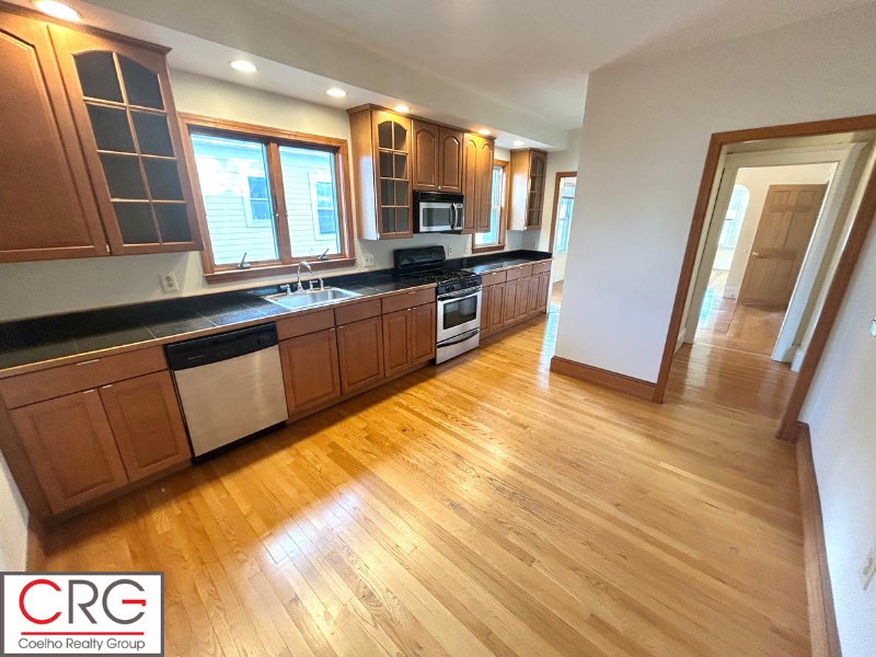 Spacious 2 bed, 1 bath near Wellington T Stop! Unit is available now with a flexible move-in date! No Fee! -Bright, sun-filled unit with plenty of natural light -Radiant hardwood floors throughout -Roomy dining area with chandelier and built-in hutch for extra storage -Comfortable living room facing the front of the property -Updated eat-in kitchen with plenty of cabinet storage in rear of unit -Granite countertops -Stainless steel appliances -Built in wine shelf -Two generously sized bedrooms with large closets -Updated full bathroom conveniently located between bedrooms -Private rear deck for outdoor relaxation -Shared laundry in basement (coin-op) -Just 0.5 miles from Wellington T Stop (Orange Line) 1 mile by car -Easy street parking on a one-way street with spots on both sides -Nearby bus lines along Fellsway Available now with a very flexible move-in date. Call or message today with questions or to schedule a showing!