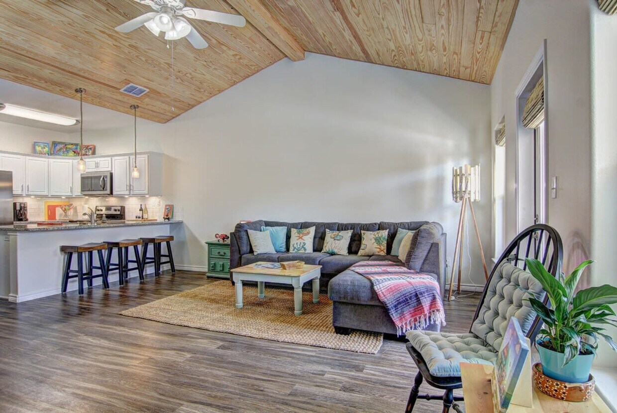 The advertised rate of $5,847/month is the lowest available price, based on a 1 month(s) stay with a move-in date of September 13, 2026. Rates vary depending on the duration of stay, season, and other parameters. For exact pricing and additional pricing components, please visit our website and enter your desired move-in and move-out dates. The rate is applicable when billed upfront; it can be higher if billed in multiple payments. Feel at home in this 3-bedroom coastal retreat in Port Aransas, comfortably accommodating up to 9 guests. Nestled in the charming Beachside Townhomes, this apartment offers a prime location for families and friends seeking relaxation and adventure. This apartment is packed with amenities, including a fully stocked kitchen with high-end appliances and a Keurig coffee maker, TVs in each bedroom, an outdoor shower, a BBQ grill, and an in-unit washer and dryer. The living room features a 65" flat-screen TV and a large plush sofa. Enjoy access to the community pool with a waterslide. Up to 2 dogs are allowed for a fee of $125 per stay. Parking is available for a maximum of 2 cars. This apartment is a 2-minute drive from the beach and is golf cart accessible. Nearby attractions include Mustang Island State Park, Mission-Aransas National Estuarine Research Reserve, Port Aransas Beach, Leonabelle Turnbull Birding Center, and The University of Texas Marine Science Institute. Enjoy nearby restaurants such as Venetian Hot Plate, Virginia's on the Bay, Fins Grill & Icehouse, Seafood and Spaghetti Works, and La Playa Mexican Grill. No cats are allowed. No parties are allowed—violations may result in immediate termination of the stay. Quiet hours are between 10 PM and 7 AM per city ordinance, and violators will be asked to leave without a refund. Smoking and/or vaping is not allowed inside or outside this property, and evidence of smoking will result in a $500 charge. [SI]