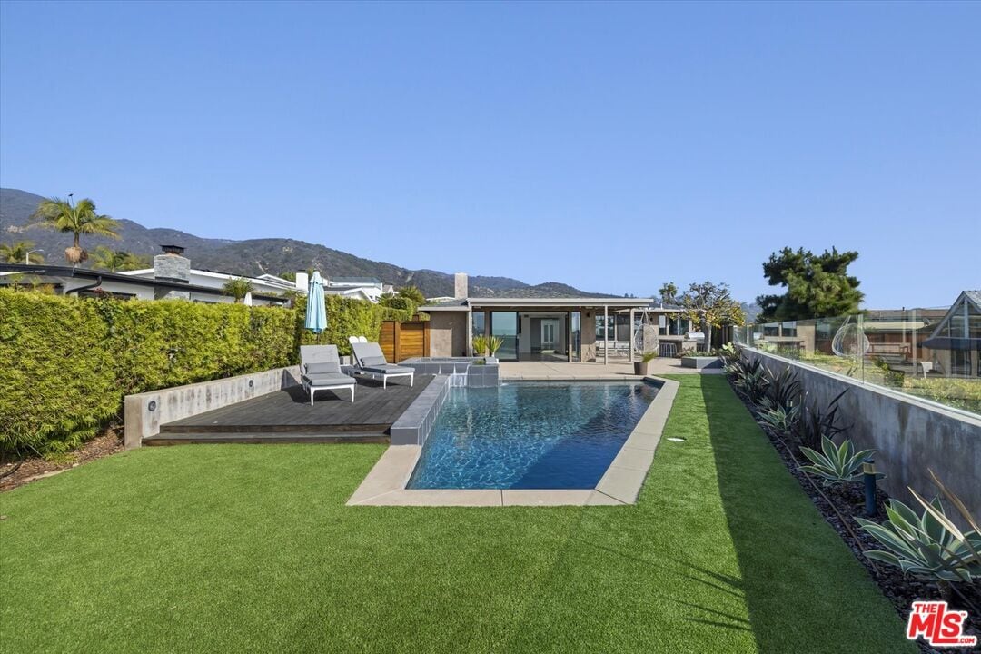 Perched in the coveted enclave of Sunset Mesa, this extensively remodeled residence offers sweeping panoramic views of the Pacific Ocean and surrounding mountains. Freshly updated with newly installed white oak engineered hardwood floors and recently refreshed throughout, the home presents a rare opportunity to enjoy the beauty and lifestyle of this special coastal community as it continues its exciting renewal. Spanning over 3,000 square feet, the home features four spacious bedrooms, a dedicated full-size office, and three modern baths. A grand entry with skylights welcomes you into light-filled living spaces framed by floor-to-ceiling windows that capture the ever-changing ocean horizon. Designed with both comfort and entertaining in mind, the open-concept layout flows effortlessly from the sleek indoor kitchen to expansive outdoor living areas. Host unforgettable gatherings with the outdoor kitchen, lounge beside the pool and spa, or unwind around the fire pit as the sun sets over the Pacific. The primary suite serves as a tranquil retreat, complete with dual walk-in closets, steam shower and a private patio ideal for morning coffee or quiet evenings. Set on a generously sized lot offering privacy and space, the home also features central heat and air and seamless indoor-outdoor living throughout. Ideally located between Malibu and the Palisades, this exceptional property offers the perfect blend of coastal serenity and city convenience. Available now for a one-year lease. MLS# 26661203