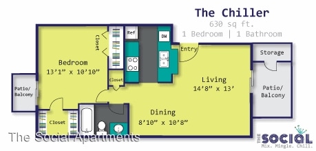 | 1 Bedroom 1 Bedroom 1 Br | 1 Bath 1 Bath 1 Ba | 630 SF |