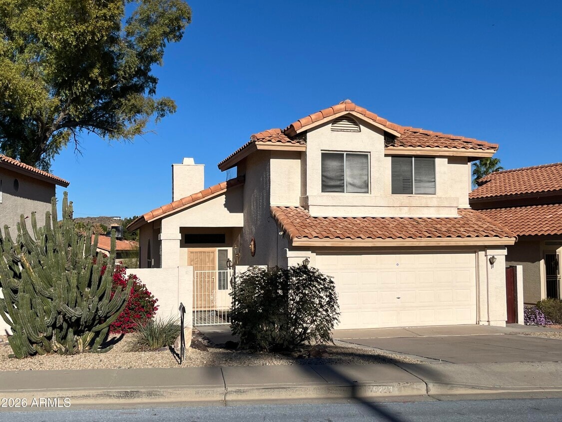 This is a HILLSIDE lot in an upscale East-side neighborhood with a view deck to see FOUR PEAKS + closer mountains + city views. A patch of artificial grass in the back for easy maintenance + a private fenced front courtyard great for BBQs and get togethers! GRANITE counters in kitchen and all 3 bathrooms,updated cabinets,PLANTATION SHUTTERS,Separate living room with formal dining,& family room is open to the kitchen. 3 full bedrooms up top with the primary opening to the view deck. If you need a sen or office on top of the 3 bedrooms some have used the formal living area for an office. Close to the 101 for ez access to Desert ridge and Scottsdale to the East or Norterra shopping area to the west!