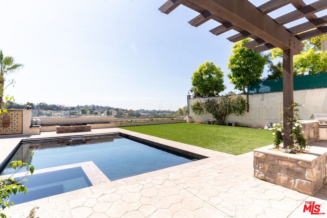 The street name says it all; come home to the height of Silver Lake living at 1824 Apex. Tucked away in a gated hilltop community 1824 Apex features an open floor plan that flows seamlessly from living room/kitchen to the outdoors. Chef's kitchen includes dual oven Wolf Range, commercial oversized refrigerator/freezer, walk in and butler's pantries. Upstairs, a sprawling primary suite with sitting area, couple's closets, and en suite bath. 3 additional bedrooms share a well appointed full bath. Guest bedroom with King Murphy bed, offering space for multi-use room. Private backyard with panoramic views. Entertain on the pergola shaded patio, outdoor kitchen featuring gas BBQ and kegerator beer tap. Soak up the LA sun, take a dip in the pool then warm up in the hot tub or by the gas fire pit and enjoy the firework displays from Dodgers stadium. Other amenities- pool bath, chlorine free pool system, patio heaters, and whole house water filtration system.