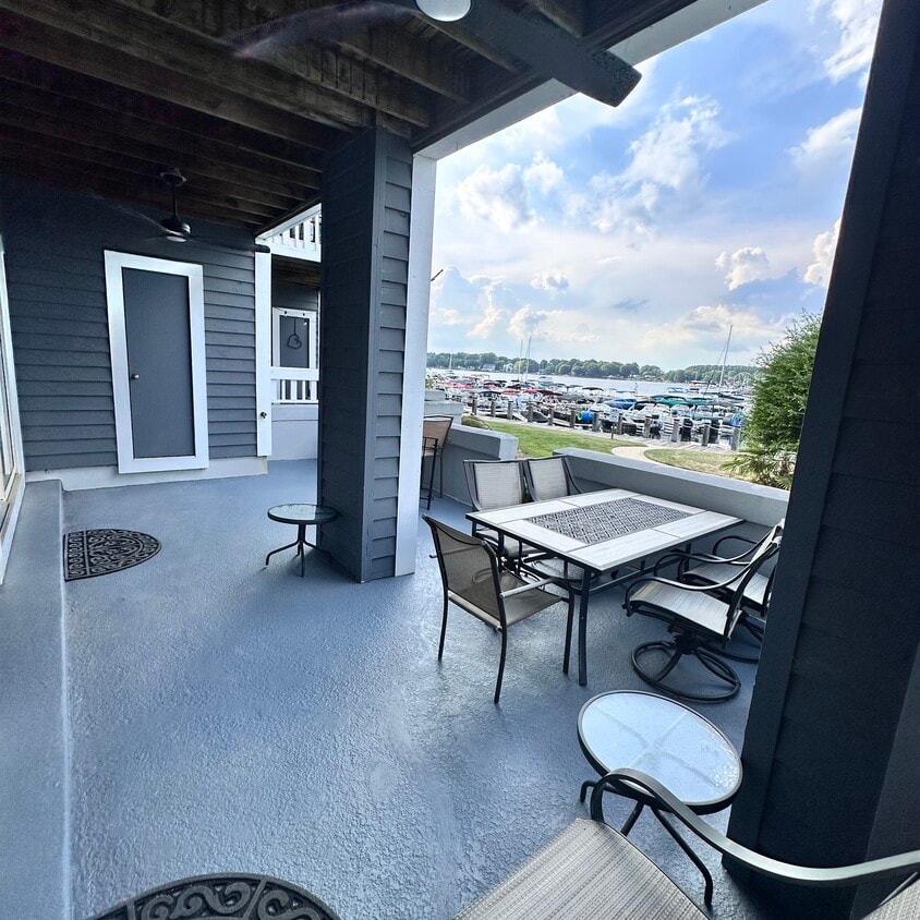 Available January 2026 .A ground floor 6month rental or long term with Utilities included .Discover the perfect Lakefront midterm or long term rental in Cornelius, North Carolina, with this modern, light-filled 2-bedroom condo. Situated on the first floor, this condo offers convenience and easy access. The two bedrooms are tastefully designed to create a serene environment. The first bedroom features a comfortable queen-sized bed, a spacious closet for storage, and nightstands with lamps for convenient bedside lighting. The second bedroom includes two twin-sized beds, a closet, and nightstands with lamps. Two bathrooms add to the convenience of this rental. Both bathrooms have a tub/shower combo and a vanity for storing toiletries and essentials. Indoor amenities include an electric and decorative fireplace, creating a cozy, relaxing ambiance. Ceiling fans are installed in the living room and both bedrooms to ensure optimal airflow and a comfortable atmosphere. The flooring throughout the condo is made of tile that resembles hardwood, adding a touch of elegance to the space. The open and inviting kitchen features a bar with three barstools for casual dining. A high dining table is also provided, accommodating up to two people for more intimate meals. The living room is designed for comfort and can accommodate up to four people. It is furnished with a sofa, an armchair, a coffee table, and a smart TV. Sliding doors lead to a patio overlooking a picturesque lake and the marina. Additionally, residents can enjoy board walk, tennis court and can access a community swimming pool for refreshing swims on warm days. This rental includes an assigned parking spot for convenience and peace of mind. Within a short driving distance, you'll find various restaurants and grocery markets, including Whole Foods, ensuring easy access to dining and shopping options. Less then 5min drive to Birkdale Village .