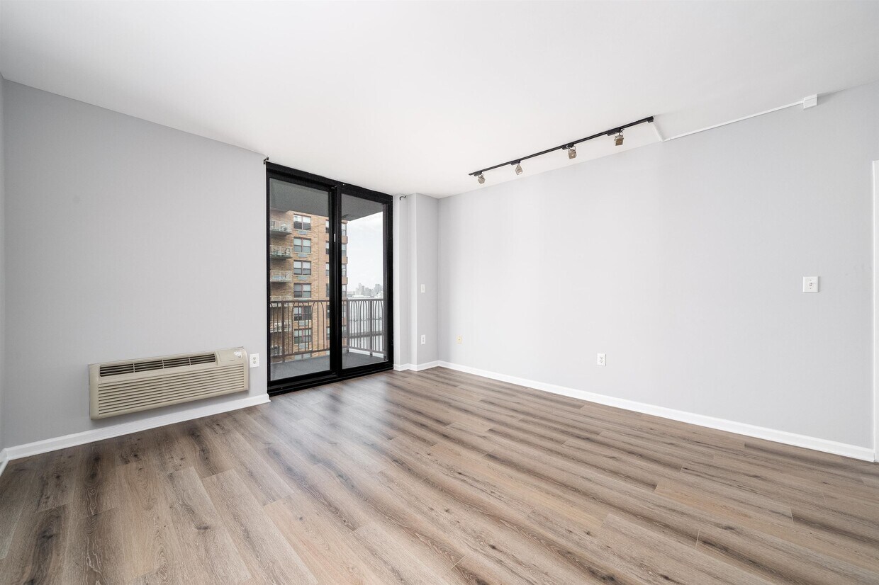 Welcome to your new 2 bedroom 2 bathroom home on the water in Hoboken! Wake up to incredible views of the Manhattan skyline from your private terrace and enjoy a leisurely breakfast in your spacious living room, complete with a separate dining area for six. Relax in your luxurious primary bedroom with an en suite bathroom and walk-in closet. The two large bedrooms are on opposite sides of the apartment for ultimate privacy. This apartment has been recently renovated with brand new flooring, bedroom closets, and a fresh coat of paint. It comes complete with an in unit washer dryer for convenience. When you're ready to work up a sweat, head to the building's gym or pool. This amazing apartment is located in a luxury building on the water in Hoboken, minutes from the ferry or bus to the city. The building also has a beautiful courtyard, parking, and all the amenities you could ever want. Walk out of your door to everything. Incredible restaurants, bars, shops, dog parks, Walgreens, Kings, Trader Joe's, Pier 13, etc.