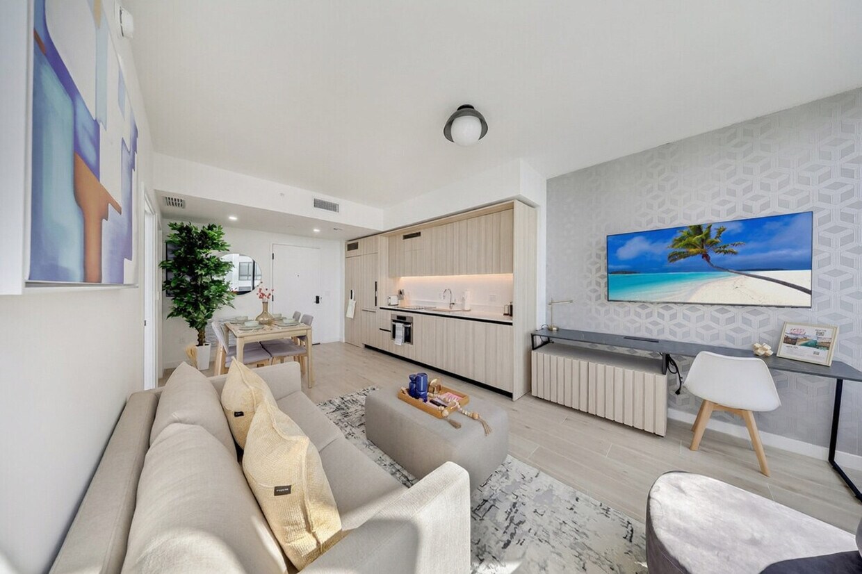 The advertised rate of $7,163/month is the lowest available price, based on a 30 day(s) stay with a move-in date of May 1, 2026. Rates vary depending on the duration of stay, season, and other parameters. For exact pricing and additional pricing components, please visit our website and enter your desired move-in and move-out dates. The rate is applicable when billed upfront; it can be higher if billed in multiple payments. Feel at home in this stunning luxury 1-bedroom apartment. The bedroom is surrounded by expansive floor-to-ceiling windows, filling the space with natural light and offering spectacular skyline views day and night. Thoughtfully furnished with modern finishes and a sleek open layout, this apartment features a comfortable bed, a fully equipped kitchen, high-speed Wi-Fi, a smart TV, and in-unit laundry. Free parking is available. [SI]