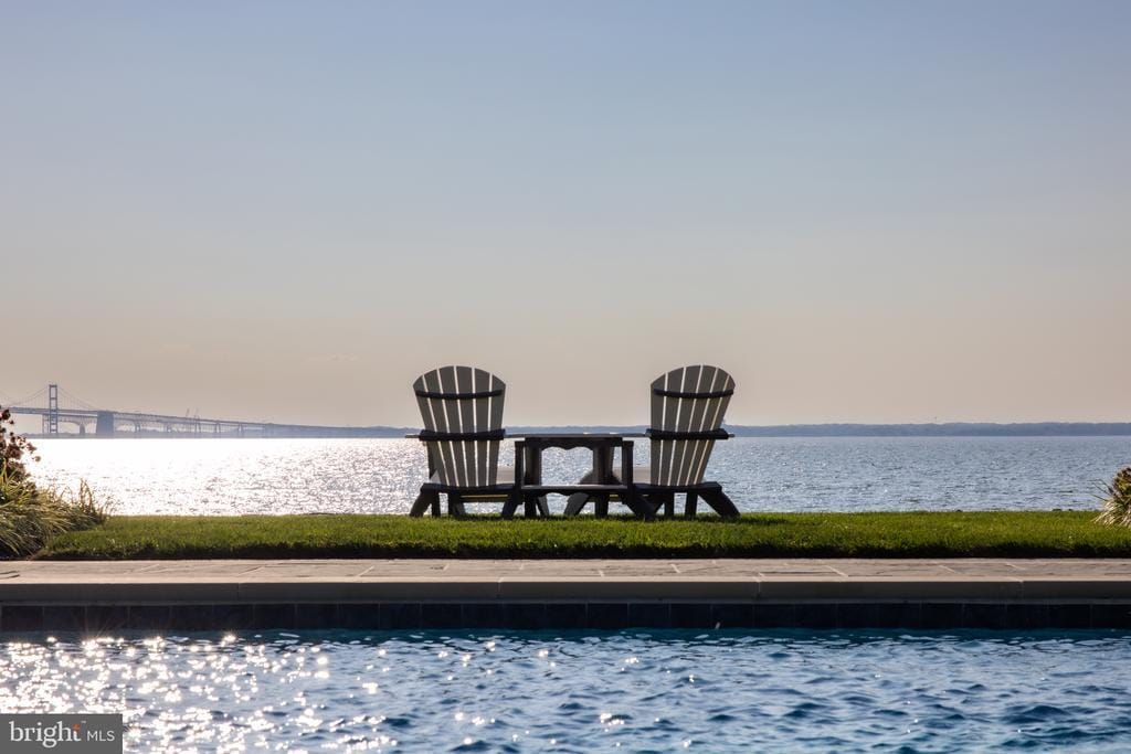 Commanding 18.67 private acres with sweeping views of the Chesapeake Bay and its iconic Chesapeake Bay Bridge, 200 Bridgeview Lane is now offered as an extraordinary lease opportunity—an estate of rare scale, privacy, and refinement. Adding to its distinction, this esteemed property was recently featured by a prestigious Hollywood studio as the backdrop for filming an award-winning television series—an honor that speaks to its cinematic presence, timeless design, and breathtaking natural setting. From its expansive grounds to its commanding water views, every element reflects a level of sophistication and exclusivity seldom available in a lease offering of this caliber. Approached through a gated drive that unfolds past manicured lawns and sculpted gardens, the property immediately establishes a sense of privacy and prestige. Every detail, from the hand-forged ironwork to the precision of its stone craftsmanship, reflects a commitment to excellence that is timeless and enduring. Inside, a dramatic double-height foyer reveals hand-milled trim, wrought-iron accents, and mahogany floors inlaid with imported stone. Expanses of glass capture 180-degree views of the Bay, drawing natural light into every corner and framing the horizon as a living work of art. Formal and informal living spaces flow effortlessly, united by coffered ceilings, bespoke millwork, and a sense of balance between grandeur and comfort. The gourmet kitchen is an entertainer’s masterpiece, anchored by custom cabinetry, professional-grade appliances, and a central island designed for gathering. It opens seamlessly to the grand parlor and a series of multi-tiered terraces overlooking the Bay, surrounding a heated pool and spa. Beyond, an outdoor pavilion with a summer kitchen, bar, and cascading fountains sets the stage for unforgettable entertaining beneath open skies. Occupying nearly 2,500 square feet, the primary suite serves as a sanctuary of peace and indulgence. It features a fireplace, sitting area, private office, and a terrace that captures sweeping water views. A spa-inspired bath with heated floors, dual vanities, soaking tub, and a marble shower complements a custom dressing room designed with meticulous detail. Each guest suite throughout the home is equally refined, offering its own private bath and distinctive character, ensuring every visitor experiences the same sense of thoughtful luxury. Located just moments from Washington, D.C. and Baltimore, yet feeling worlds away, 200 Bridgeview Lane stands as a rare lease offering of seclusion, scale, and sophistication, where architectural artistry meets the infinite beauty of the Bay.