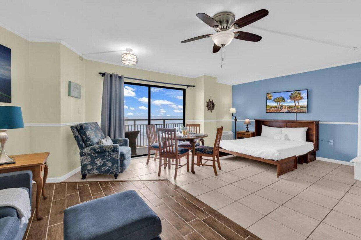 Feel at home in this delightful 1-bedroom condo in Myrtle Beach, offering a peaceful beachside getaway. The spacious living room is perfect for relaxation, while the cozy dining area and fully equipped kitchen make it easy to prepare and enjoy your own meals. The building boasts impressive amenities, including a game room for entertainment, a fully equipped gym to maintain your fitness routine, multiple pools (including a kids' pool for family fun), a relaxing spa with a shared sauna, and a shared hot tub for unwinding after a day at the beach. This condo also features air conditioning, heating, and a balcony. Free parking is available at the property for a maximum of 2 cars in front of the building and in a parking garage located on Cassandra Lane. Guests will need to retrieve the keycard from the room in order to access the parking garage. This condo is 5 blocks away from the Myrtle Beach Convention Center and 3 minutes away from Walmart. Nearby attractions include Myrtle Beach Boardwalk, Sky Wheel Myrtle Beach, Alabama Theatre, Tanger Outlet Mall, and Ripley’s Aquarium. Smoking is not allowed in the unit or on the balcony, and any violation of the smoking policy will result in a $250 fine, in addition to a charge for any cleaning costs. No pets are allowed, and any violation of this policy will incur a $200 fine. House parties and illegal substances are strictly prohibited and grounds for immediate eviction. You must be at least 21 years old to book this property. Leaving the unit later than the check-out time will incur a late check-out penalty starting from $500. No items should be dropped or thrown from the balcony. If you exceed the maximum allowed number of occupants, a penalty of $100 will be applied. For same-day late check-ins, you need to get approval before booking. A state identification card or driver's license copy will be requested upon booking. Mr. Vaporizer performs monthly preventative treatments in every unit on the 2nd Wednesday for tower floors 2nd to 9th and on the 3rd Wednesday for tower floors 10th to 15th and Villa 1 and Villa 2. There are 6 pools and 1 kiddie pool, and 1 lazy river (across the street) opens from 10 am to 11 pm. [SI]