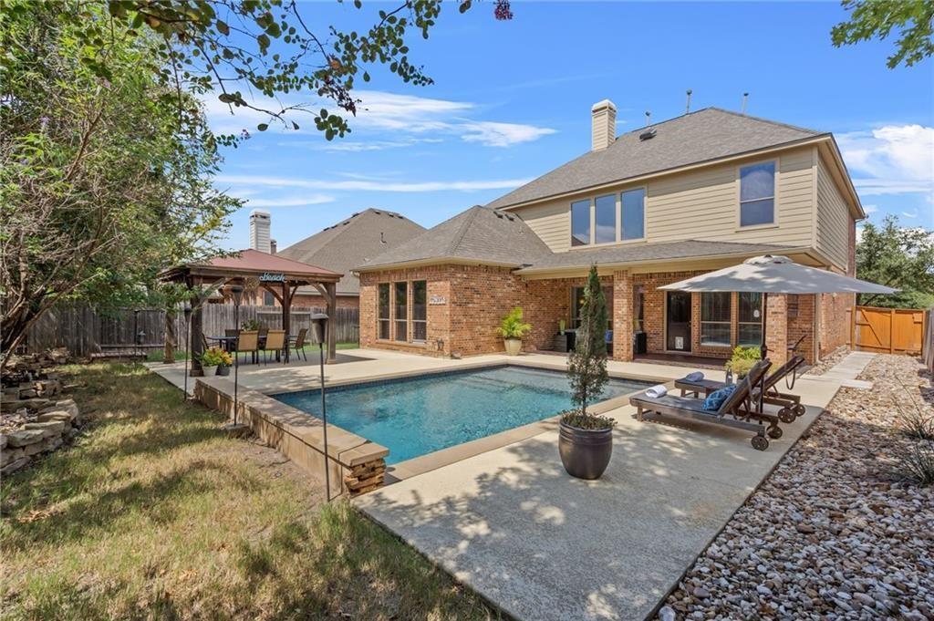 (UPDATE: 360 4k VIDEO TOUR AVAILABLE!) Unmatched value proposition for a property with a private pool & cabana. Well-appointed home in the sought after community of Crystal Falls located just 25 miles from downtown Austin. Situated on a large, interior lot with majestic brick façade and nicely landscaped exterior. Open floorplan with soaring two-story ceilings and an abundance of natural lighting. Great kitchen with stainless steel appliances, quartz countertops and mosaic tile backsplash to the ceiling. Large island with a wraparound breakfast bar overlooking the expansive living area with corner fireplace and a wall of windows. Gleaming hardwood flooring downstairs. Spacious primary suite on main level with step ceiling, dual vanities, soaking tub, walk-in shower and custom walk-in closet. 3 roomy secondary bedrooms, game room and flex room upstairs. Incredible backyard with gorgeous covered patio looking out to the sparkling, in-ground pool and extended decking with freestanding pavilion, ideal for entertaining guests or enjoying your own private oasis. Located in the highly coveted Leander ISD.