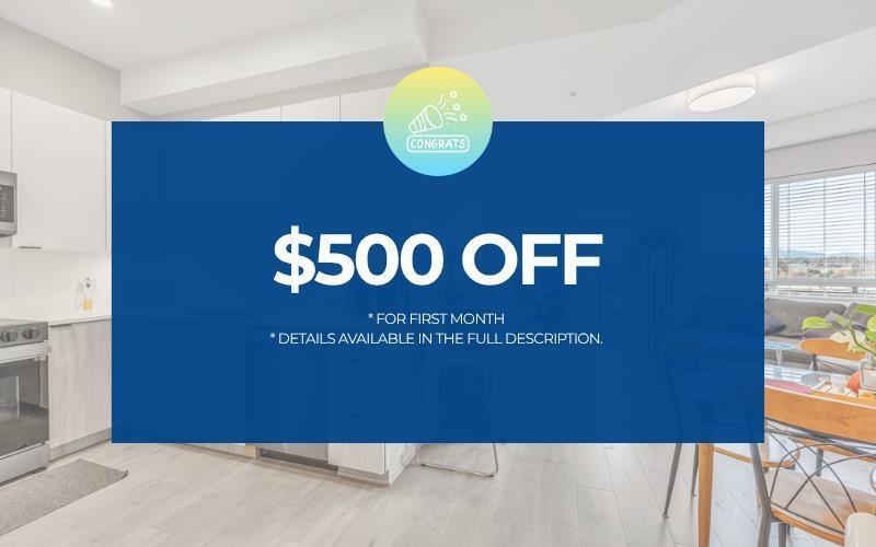 $500 OFF for first month . Beds/Baths: 1 Bed / 1 Bath . Size: Approx. 750 sq.ft. . Parking: 1 secured gated stall (+ 2 visitor stalls) . Locker: None . Pets: Not permitted . Smoking: Not permitted . Availability: November 15 or sooner . Lease Term: Minimum 1 year . Features: Modern kitchen,stainless appliances,in-suite laundry . Notes: Tenant insurance required (id:52069) ID#: 2197501