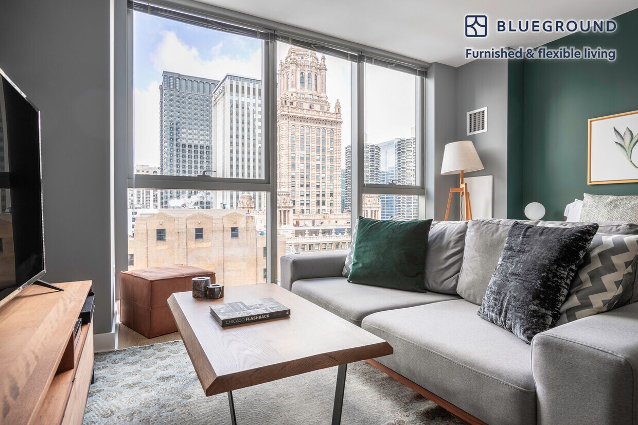 Discover the best of Chicago, with this studio apartment in The Loop with high floor views over the city. It’ll be easy to simply show up and start living in this fashionably furnished apartment with its fully equipped kitchen, cozy living room, and our dedicated, on-the-ground support. (ID #CHI17) The advertised rate of $2,130/month is the lowest available price, based on a 1 month(s) and 3 day(s) stay with a move-in date of March 28, 2026. If you’re looking for a 1-year stay, the rate is $2,620/month. Rates vary depending on the duration of stay, season, and other parameters. For exact pricing and additional pricing components, please visit our website and enter your desired move-in and move-out dates. The rate is applicable when billed upfront; it can be higher if billed in multiple payments. Brokers are welcome to reach out. Were you looking for an unfurnished lease? Try Blueground instead and upgrade from unfurnished to furnished living: - Furnished at rates comparable to unfurnished - No setup or furniture costs - save thousands - Move-in ready - save time, just bring your suitcase Designed with you in mind Gorgeous furniture, fully equipped kitchen, smart TV, and a premium wireless speaker are just a few of the amenities you’ll find inside this studio apartment. Ideally located in Chicago, you’ll find a lot to love outside as well. When you’re ready to relax, you’ll be happy to discover every Blueground bedroom comes with superior quality mattresses, fully stocked linens, and cozy towels. We handle everything so you can simply show up and start living. This apartment also offers in-apartment laundry. Sleeping arrangements Queen Bed, 63in/160cm Amenities Building amenities unique to this studio apartment include an on-site: - BBQ Area - Doorman - Dryer - Elevator - Game room - Swimming pool - Washing machine - Lounge - Pets allowed Arrival and ongoing support The entire apartment is yours to enjoy! Throughout your stay, you’ll have access to our Client Experience team through the Blueground App. You can schedule additional cleanings, submit maintenance requests, and view our neighborhood recommendations with just a few taps. We’ll share all details upon confirmation of your stay. Ideally Located This furnished rental is situated in the most dynamic and convenient place to live in Chicago, The Loop. With its endless shopping, fine dining, stunning park, river and lake views, and entertainment opportunities, everything is possible at a moment’s notice. The area is a cultural getaway for professionals and students, who can combine work with pleasure. Discover landmark buildings like the Willis Tower and The Art Institute of Chicago. Millenium Park, near Lake Michigan, is always worth a visit. The Loop is within reach of accessible transportation, offering non-stop public transit, buses, and taxis. Union Station is approximately a 10 minute train ride. Other things to note Building amenities may have an extra cost. This Blueground apartment has flexible lease options, allowing you to book it for one month, a year, or more. Pets are welcome, though weight limits and breed restrictions apply and may incur fees. We take great pride in ensuring every photo displayed is shot in our own units with our actual furnishings. That said, we regularly refresh our decor and furniture arrangement, which may differ from what’s pictured. Also note - This apartment faces the street - This apartment's central location means it can be noisy at times - This is a guarded building equipped with a doorman/concierge at all times [SI]