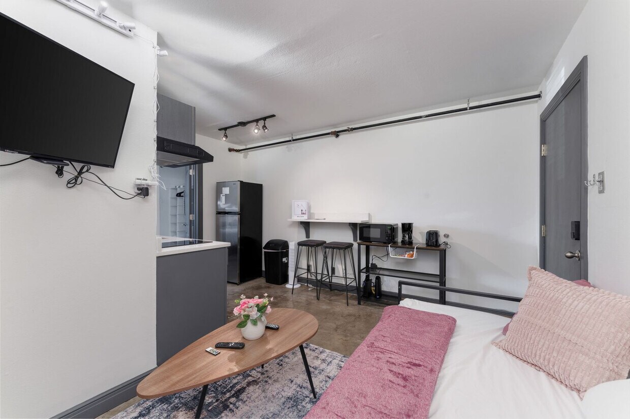 Explore the vibrant Downtown Corpus Christi with this chic 1-bedroom apartment, perfectly situated for urban adventurers. Just a short walk to the shoreline, bars, and restaurants, this home offers a cozy ambiance and modern amenities. Ideal for those seeking a prime location to immerse themselves in city life, this apartment can accommodate up to four guests. This modern 1-bedroom apartment serves as your ultimate urban sanctuary in Downtown Corpus Christi. The fully equipped kitchen features a stove, oven, full-size fridge, and microwave, along with pots, pans, utensils, and tableware for your culinary needs. Enjoy a complete coffee bar with creamer and sugar for the perfect brew. Relax in the living room with a smart TV and comfortable seating, or enjoy intimate meals at the counter with bar stools. For restful sleep, the apartment offers a cozy queen-size bed, a twin-size rollaway bed, and a fold-down sofa. The apartment offers a modern on-site laundromat with credit card-based technology, managed through the CS Works app for ultimate convenience. Extended stay discounts are available for bookings over seven days, and a mid-stay cleaning fee applies for stays over six nights. Welcome to Downtown Corpus Christi, where vibrant city life meets coastal charm. Steps away from top-notch restaurants, bars, and cafes, you can savor Tex-Mex at Lucy's, enjoy live music at the Executive Surf Club, or relish Japanese cuisine at Dokyo Dauntaun. Stroll or bike along the scenic Seawall trail for captivating sunrise or sunset adventures. The apartment is conveniently located near attractions such as the Corpus Christi Bayfront, USS Lexington Museum, Texas State Aquarium, Selena Memorial Statue, and more. Expect occasional foot traffic, transient populations, and siren noises due to the proximity to downtown and major facilities like the police station, fire station, and hospital. The apartment is in a bustling area, offering a vibrant atmosphere. No pets or emotional support animals are allowed, with a $200 fine for violations and immediate eviction. No smoking is allowed, with a $200 fine for violations confirmed by use of an ozone machine. No parties or events are allowed, with a maximum of four guests. Violations will result in immediate eviction. Check-in is any time after 4pm, and check-out is by 11am. A $75 initial late fee applies for guests that do not check out by 11am, with $40 per hour thereafter. Includes a dedicated desk, chair, and ample shelving for productivity, making it a remote work-friendly space. A laptop computer is not included. [SI]
