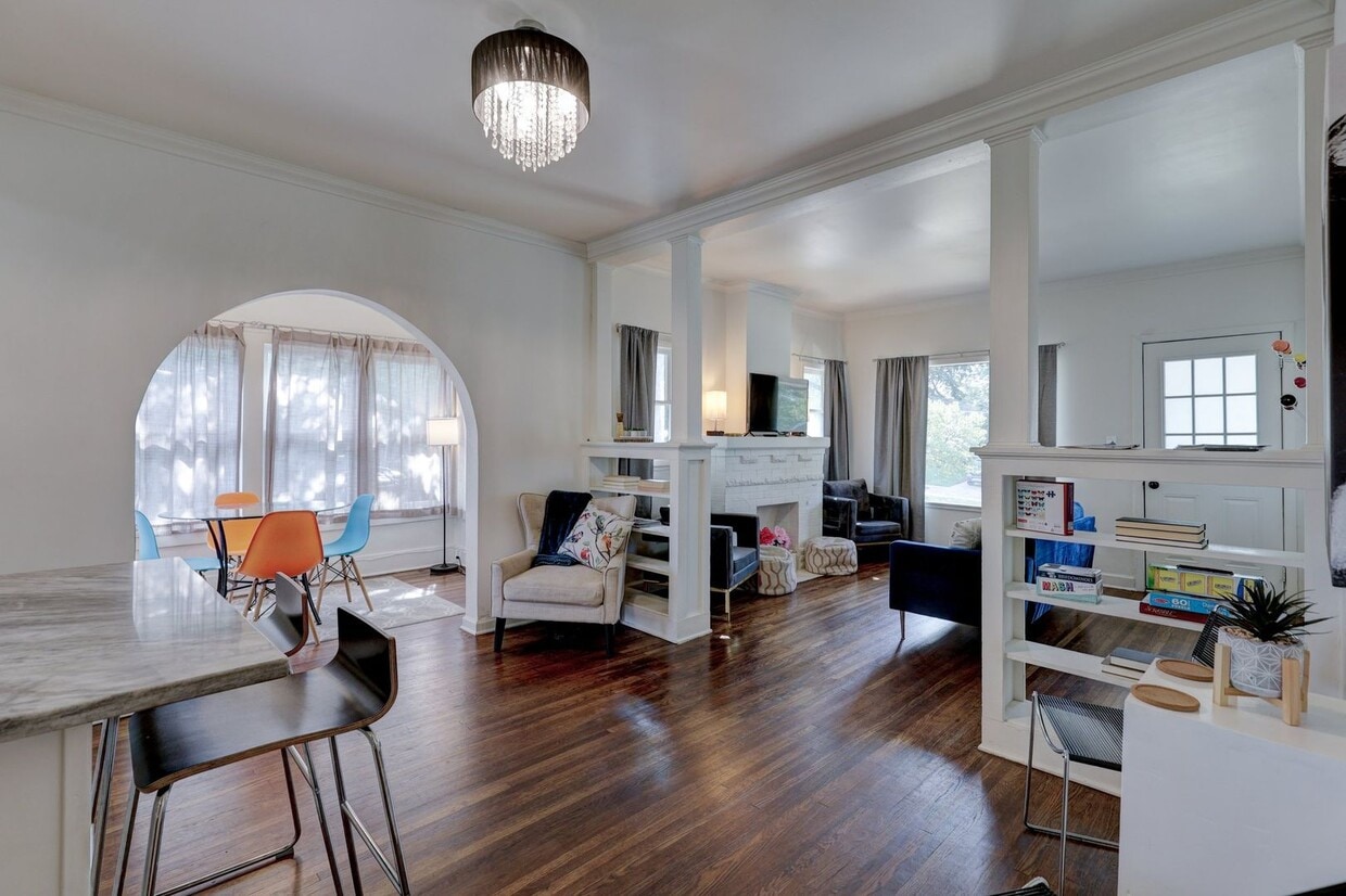 This charming 3-bedroom, 1-bathroom home is located in the heart of Tulsa, OK, just 4 minutes from downtown. The house boasts an open floor plan, perfect for entertaining or simply enjoying a relaxed lifestyle. The kitchen is a chef's dream with stainless steel appliances, a dishwasher, microwave, refrigerator, stove, oven, and a kitchen island with butcher block countertops. The home also features a washer and dryer for your convenience. The living area is adorned with built-in bookcases, adding a touch of elegance and providing ample storage. The home is fully furnished, ready for you to move in and start enjoying life in Owen Park. The interior features a mix of wood and tile flooring, adding to the home's warm and inviting ambiance. Step outside to a large backyard, enclosed with a wood privacy fence, perfect for outdoor activities. The property also includes a covered patio area and a covered front porch, ideal for enjoying those beautiful Tulsa evenings. This home is updated and well-maintained, ensuring a comfortable living experience. With a minimum stay of one month, this home is perfect for those seeking a short-term rental or a longer stay. Experience the best of Tulsa living in "Fully Furnished in Owen Park!" Applications can be submitted at Contact Cara for more information! ***Brokers strive for accuracy, but applicants/tenants should independently verify information. All properties are subject to prior lease, change, or withdrawal. Neither TPC nor listing brokers are responsible for typographical errors or misinformation and are held harmless from any damages arising from reliance on this data. This data is for personal, non-commercial use only, to identify prospective properties for leasing.***