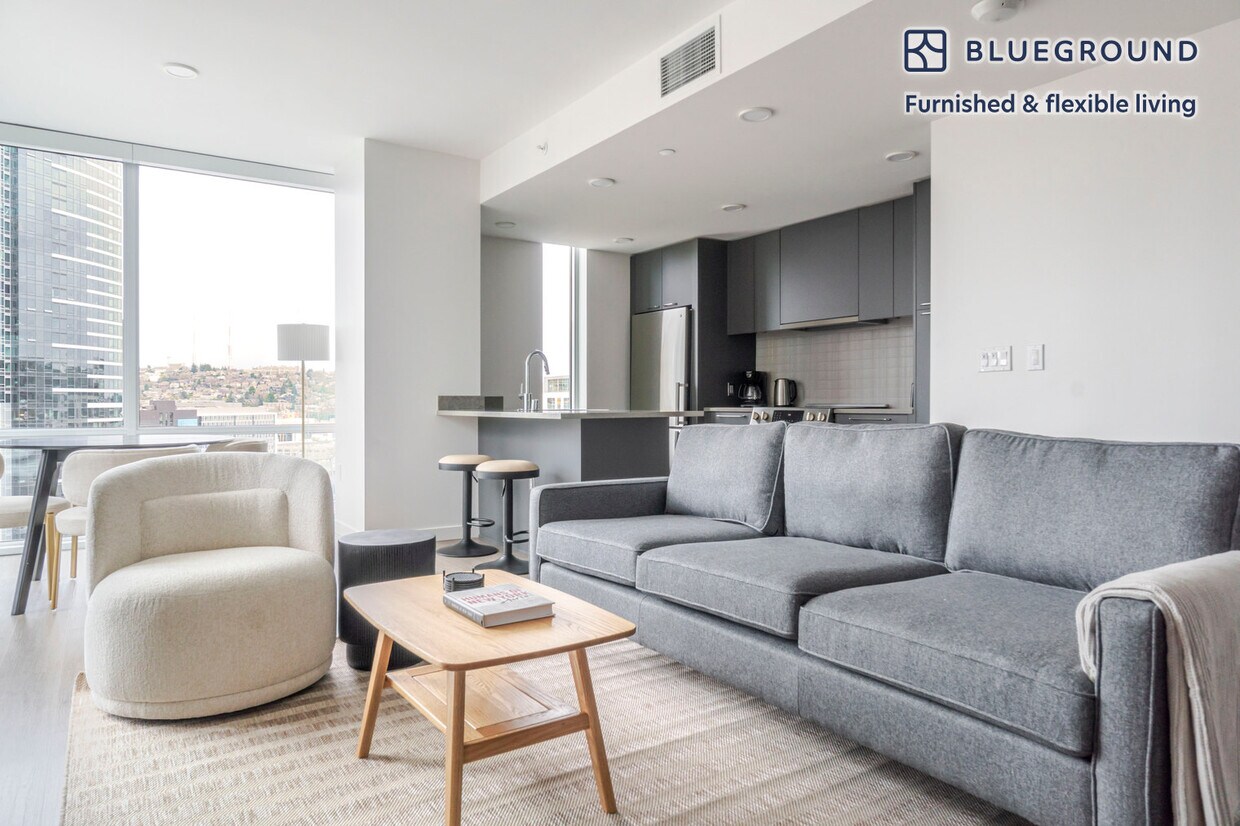 Show up and start living from day one in Seattle with this stylish two bedroom Blueground apartment. You’ll love coming home to this thoughtfully furnished, beautifully designed, and fully equipped Denny Triangle home. (ID #SEA984) The advertised rate of $4,600/month is the lowest available price, based on a 12 month(s) stay with a move-in date of May 2, 2026. Rates vary depending on the duration of stay, season, and other parameters. For exact pricing and additional pricing components, please visit our website and enter your desired move-in and move-out dates. The rate is applicable when billed upfront; it can be higher if billed in multiple payments. Brokers are welcome to reach out. Were you looking for an unfurnished lease? Try Blueground instead and upgrade from unfurnished to furnished living: - Furnished at rates comparable to unfurnished - No setup or furniture costs - save thousands - Move-in ready - save time, just bring your suitcase Designed with you in mind As with any Blueground apartment, you’ll find a thoughtfully designed space complete with beautiful furniture and a fully equipped kitchen in this two bedroom property. And, thanks to our superior quality mattresses, fully stocked linens, and towels, you can relax knowing you’ll always feel comfortably at home. When you’re ready for some fun, you can take in the Seattle vibes or bring the entertainment to you with the premium wireless speaker or smart TV. This apartment also offers in-apartment laundry. Sleeping arrangements King Bed, 70.8in/180cm Queen Bed, 63in/160cm Amenities Building amenities unique to this two bedroom apartment include an on-site: - Dryer - Elevator - Game room - Washing machine - Lounge - Parking - Pets allowed - Rooftop BBQ - Sauna Arrival and ongoing support The entire apartment is yours to enjoy! Throughout your stay, you’ll have access to our Client Experience team through the Blueground App. You can schedule additional cleanings, submit maintenance requests, and view our neighborhood recommendations with just a few taps. We’ll share all details upon confirmation of your stay. Ideally Located This furnished apartment is located in Denny Triangle, referring to the triangle-shaped area formed by Denny Way, Olive Way, and 5th Avenue. As the home of the Amazon Seattle headquarters, this area is a thoroughly developed business hub, full of high rise offices and condos. There’s no shortage of dining options here, offering practically every cuisine for lunch or dinner. This neighborhood is ideal for walking, and the central location makes it easy to go on foot to Downtown, South Lake Union or Capitol Hill. To get around, the King Country Metro Route 8 will be your guide. Other things to note Building amenities may have an extra cost. This Blueground apartment has flexible lease options, allowing you to book it for one month, a year, or more. Pets are welcome, though weight limits and breed restrictions apply and may incur fees. Parking is offered based on availability and is subject to a fee. We take great pride in ensuring every photo displayed is shot in our own units with our actual furnishings. That said, we regularly refresh our decor and furniture arrangement, which may differ from what’s pictured. [SI]
