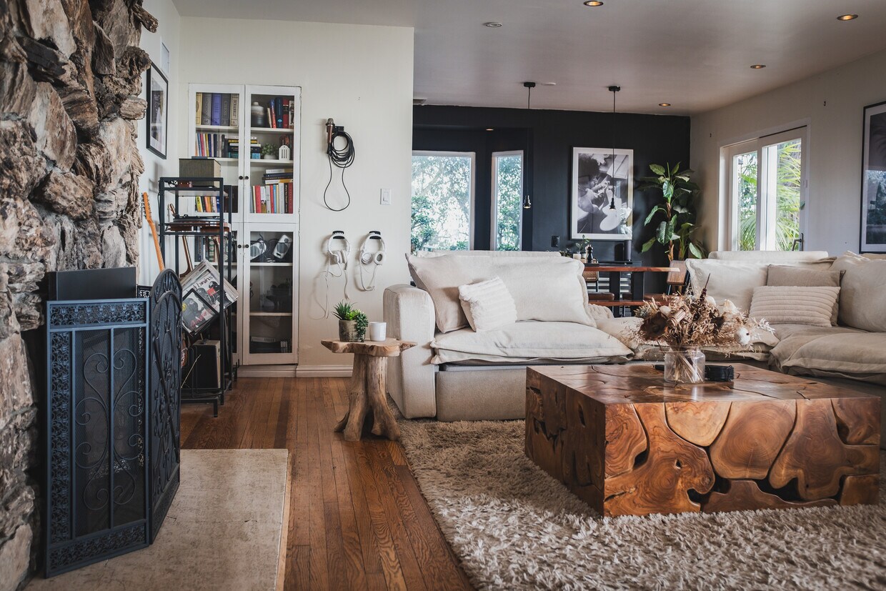 This truly one-of-a-kind Laurel Canyon home offers a rare combination of privacy, space, and creative infrastructure at one of the highest points in the city, with sweeping panoramic views in every direction. The property is ideally suited for musicians, producers, artists, and creative professionals seeking an inspiring long-term residence. The main house features 3 bedrooms and 5 bathrooms, including a spacious primary suite with kingsize bed and en-suite bath and bathtub, a guest bedroom with queenside bed and en-suite shower, and an upstairs bedroom with double bed and a large foldout sofa (queen size) with its own dedicated private bathroom located directly next to the room. The home also includes an additional office / crafts room, ideal for creative work, design, sewing, or administrative use. A standout feature is the detached, professionally acoustically treated music recording studio with a separate entrance, bathroom and kitchenette. The studio includes acoustic treatment and furniture but no music equipment, making it ideal for producers or creatives who want to bring their own setup while preserving a purpose-built studio environment. The home comes fully furnished and rented as-is, including furniture, decor, TVs, and household items as shown in photos. A Young Chang baby grand piano is currently in the home and is available for purchase separately, by negotiation. Outdoor spaces are expansive and exceptional, offering multiple areas to relax, work, or entertain quietly while enjoying unmatched views of Los Angeles, a large heated pool, hot tub, fire place and patio heaters. Parking is generous for a hillside property, with a covered carport plus additional on-property parking areas. This is a rare opportunity to lease a highly specialized, creatively focused home in one of LA's most iconic neighborhoods. No large parties or subleasing. Pets may be considered on a case-by-case basis. Terms: Minimum lease term: 6 months (longer-term preferred) Security deposit: Required Utilities: Tenant pays all utilities directly to utility providers based on usage Fully furnished rented as-is. Furniture, decor, TVs, and household items shown in photos are included. The property will be delivered as-is; no changes to condition. Includes a detached music recording studio with separate entrance. Studio is fully and professionally acoustically treated and furnished, but no music equipment is included. Optional: Current tenant is willing to sell the YOUNG CHANG BABY GRAND PIANO (separately negotiated).