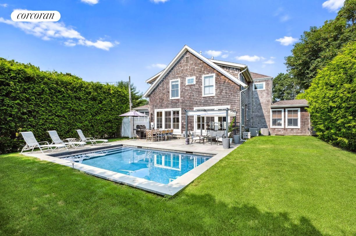 Located in a private hilltop setting in the heart of Southampton Village, this fully renovated traditional offers 4 bedrooms and 4 baths. Upon entering one has an immediate line of sight, through an expanse of six sliding glass doors, to the beautiful backyard setting with bluestone patio and gunite solar-heated pool, surrounded by 15' tall arborvitae. The main levels offers a marble gourmet and stainless kitchen that will satisfy any chef's needs, with large island and high-end Wolf and Sub Zero appliances. A spacious living room with gas fireplace, a separate dining room with space for 10, a guest bedroom and bath complete the main level. The second floor has a beautiful master suite with ensuite bathroom overlooking the property, 2 additional bedrooms, and a third bathroom. This property also offers a separate artist's studio wired for entertainment, with a full bath, a/c, and heating. With a 5 minute, one can be in the center of the village with restaurants and shopping, and a 5 minute drive to the best ocean beaches. One will not find a better value in the Village.