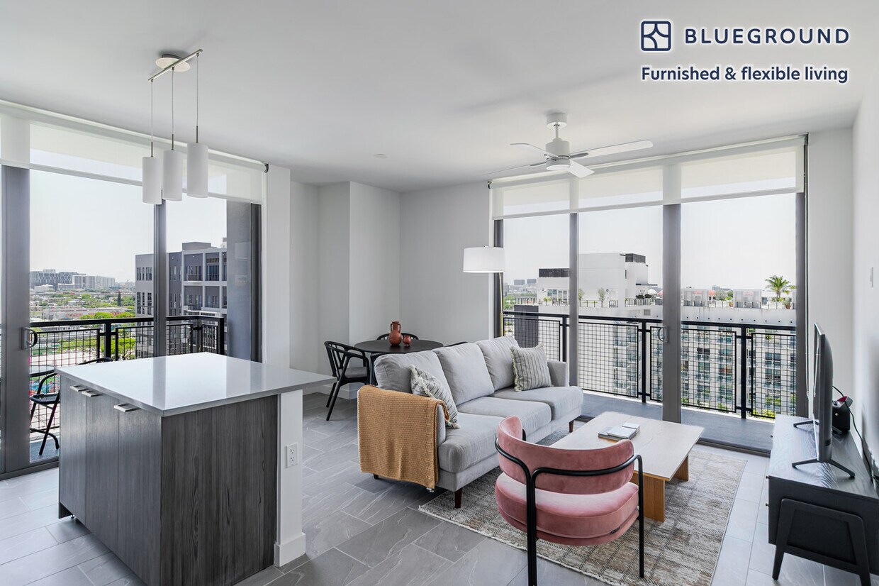 Discover the best of Miami, with this two bedroom apartment in Wynwood. It’ll be easy to simply show up and start living in this furnished apartment with its fully equipped kitchen, living room, and our dedicated, on-the-ground support. (ID #MIA146) The advertised rate of $4,210/month is the lowest available price, based on a 5 month(s) and 21 day(s) stay with a move-in date of September 1, 2026. If you’re looking for a 1-year stay, the rate is $4,360/month. Rates vary depending on the duration of stay, season, and other parameters. For exact pricing and additional pricing components, please visit our website and enter your desired move-in and move-out dates. The rate is applicable when billed upfront; it can be higher if billed in multiple payments. Brokers are welcome to reach out. Were you looking for an unfurnished lease? Try Blueground instead and upgrade from unfurnished to furnished living: - Furnished at rates comparable to unfurnished - No setup or furniture costs - save thousands - Move-in ready - save time, just bring your suitcase Designed with you in mind Thoughtfully designed with bespoke finishes, modern furnishings, and a fully equipped kitchen, you’ll enjoy that “I’m home” feeling with this Blueground apartment. Whether you’re lounging in your charming living room streaming the latest and greatest entertainment on the smart TV or premium wireless speaker, or getting some well-earned rest on the superior quality mattress with fully stocked linens, you’ll fall in love with everything this Wynwood apartment has to offer. This apartment also offers in-apartment laundry. Sleeping arrangements King Bed, 70.8in/180cm Queen Bed, 63in/160cm Amenities Building amenities unique to this two bedroom apartment include an on-site: - BBQ Area - Dryer - Elevator - Swimming pool - Washing machine - Lounge - Pets allowed Arrival and ongoing support The entire apartment is yours to enjoy! Throughout your stay, you’ll have access to our Client Experience team through the Blueground App. You can schedule additional cleanings, submit maintenance requests, and view our neighborhood recommendations with just a few taps. We’ll share all details upon confirmation of your stay. Ideally Located This furnished apartment is located in Wynwood, a hip, walkable neighborhood just north of downtown Miami. The neighborhood is beloved by scenesters, thanks to its many colorful murals, known as the Wynwood Walls, and happening bars and clubs. Wynwood has a number of notable craft microbreweries as well as swanky cocktail lounges and warehouses that have been transformed into art galleries. The culinary scene is equally eclectic, with everything from fast food to raw seafood to high-end Mexican fare. Although most residents rely on cars to get around, Wynwood is served by several bus routes. Other things to note Building amenities may have an extra cost. This Blueground apartment has flexible lease options, allowing you to book it for one month, a year, or more. Pets are welcome, though weight limits and breed restrictions apply and may incur fees. We take great pride in ensuring every photo displayed is shot in our own units with our actual furnishings. That said, we regularly refresh our decor and furniture arrangement, which may differ from what’s pictured. Also note - This apartment faces the street - This apartment's central location means it can be noisy at times - This apartment is located near a railway, so expect to hear moderate noise when trains pass [SI]