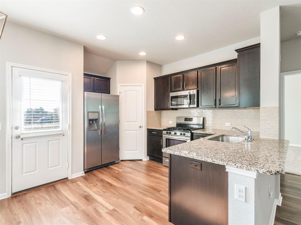 Charming single story in amenity rich Larkspur community. This spacious open concept plan greets guest with gleaming vinyl hardwood floors flowing through the main areas. The kitchen overlooks the eat in breakfast space and living room. Featuring granite counters, designer backsplash, and stainless appliance the kitchen creates a stylish and comfortable place to cook. The spacious primary suite leads into a primary bath with large walk in shower and walk in closest. Two additional bedrooms are sizable, allowing for queen bed sets. Out back, enjoy your large backyard with privacy of an unoccupied culdesac and easement behind. The flagstone patio is perfect for entertaining and lounging. Enjoy fabulous parks, pool, walking trails, and highly rated onsite elementary school. Conveniently located off Hwy 183, major retail, shopping, and entertainment is just a few miles away.