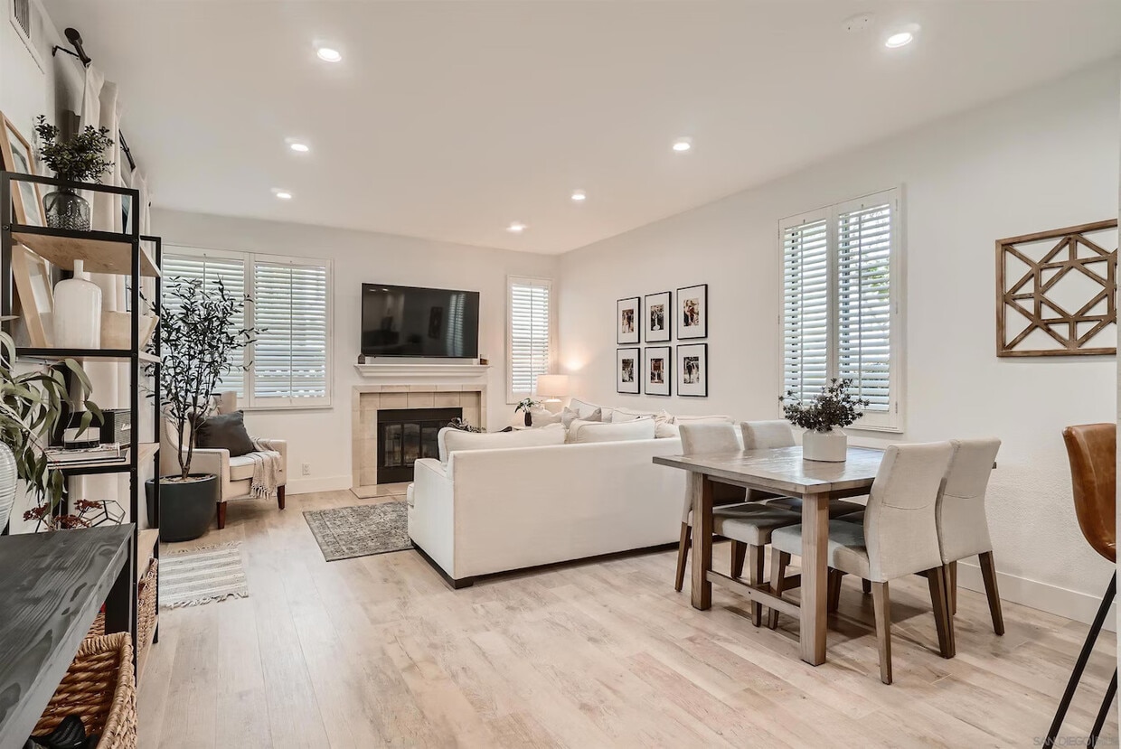 This beautifully updated corner unit is located in the desirable River Run complex. The spacious living area features 9-foot ceilings, recessed lighting, plantation shutters that allow for abundant natural light, and a beautiful fireplace that adds warmth and charm. The home includes a new HVAC system installed in 2019, in-unit laundry with washer and dryer, shaker-style cabinets, and quartz countertops. The bedroom offers ample storage with two closets, including a walk-in closet, plus an additional storage closet on the patio. This unit comes with two parking spaces—one covered assigned spot and one uncovered spot. The complex offers plentiful guest parking and resort-style amenities including a fitness center, pool and spa, picnic areas, and tranquil water features. Conveniently located just minutes from shopping centers, the new Snapdragon Stadium, and SDSU West. This home is immaculate—come check it out!