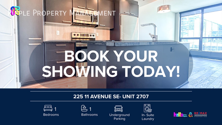 AMAZING 1 BEDS, 1 BATHS CONDO | NO PETS ALLOWED Welcome to your next home! This beautifully maintained 225 11 Avenue SE- Unit 2707 offers the perfect blend of comfort, style, and convenience in the community of Beltline SHOWINGS: Open-house format — book today! Prices, availability, and promotions subject to change without notice. Features: - Furnished or Unfurnished: Unfurnished - Utilities Included: Natural Gas & Water - Pets: No Pets Allowed - Smoking: Non-Smoking - Parking: Underground Parking - Storage Included: No - Laundry: In- Suite Laundry - Management Type: Full Management - Lease Term: Long Term Why You'll Love It: - Expansive Living Area: A large, inviting living room perfect for entertaining, featuring direct access to a private balcony. - Modern Open Concept Kitchen: Designed for seamless flow and functionality, fully equipped with all essential appliances. - Spacious Main Bedroom: A comfortable retreat offering generous closet space for all your storage needs. - Move-In Ready Finishes: Enjoy added privacy and convenience with window coverings included throughout the home. Building Perks: - Direct Indoor Access to Sunterra Market: Residents can shop for premium groceries, visit the bakery, or dine at the MarketBar without stepping outside. - On-Site Retail & Coffee: Home to a Starbucks, Five Vines Wine & Spirits, and Royal Bank (RBC) right at the base of the building. - Dual Fitness Centers: Access to state-of-the-art cardio and weight-training facilities. - Exclusive Owners' Lounge: A sophisticated social space featuring a pool table, flat-screen TVs, and a kitchen area for hosting events. - Relaxing Spa Amenities: Includes a building-exclusive hot tub and steam room for resident use. - Rooftop Sky Garden: A massive, landscaped "Plus-15" outdoor oasis with BBQ stations and lounge seating. - Heated Underground Parking & Storage: Secured titled parking and dedicated bike storage rooms. - Fully Furnished Guest Suites: Two professional guest suites available for rent to accommodate your out-of-town visitors. - Professional Management & Security: Features 24-hour on-site security, keyless FOB entry, and a full-time building manager. Location Perks: - Ultra-Convenient On-Site Shopping: Direct indoor access to Sunterra Market, a premium grocery store, bakery, and the MarketBar restaurant—all without leaving the complex. - Prime Entertainment Access: Just steps from the Scotiabank Saddledome, the Stampede Grounds, and the upcoming Calgary Culture and Entertainment District. - Walker's & Commuter's Dream: Boasts a 97 Walk Score and is only a 5-minute walk to the Victoria Park/Stampede CTrain station and the downtown +15 Skywalk system. Book your viewing today — this one won't last.