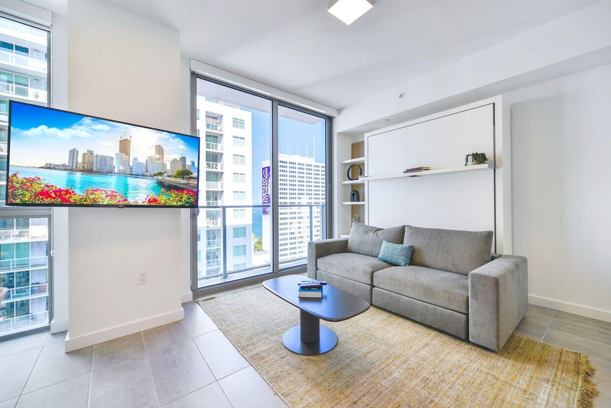 The advertised rate of $4,170/month is the lowest available price, based on a 1 month(s) stay with a move-in date of September 2, 2026. Rates vary depending on the duration of stay, season, and other parameters. For exact pricing and additional pricing components, please visit our website and enter your desired move-in and move-out dates. The rate is applicable when billed upfront; it can be higher if billed in multiple payments. Welcome to your luxury retreat offering breathtaking views from the heart of Downtown Miami. This apartment is the perfect home base for exploring the city's best, with an unbeatable location just steps away from world-class concerts and events at the Kaseya Center, the beautiful green space and bay views of Bayfront Park, and acclaimed dining like Cvi.che 105 and Motek Downtown. Enjoy a stunning rooftop pool and premium amenities for an unforgettable stay. Step into a stylish and smartly designed space, created for ultimate comfort and convenience during your Miami stay. Relax in a modern living space featuring a comfortable sofa bed and a TV for entertainment. Unwind on a plush full-size bed, ensuring a great night's sleep after a day of exploring. A sleek, fully equipped kitchen has everything you need to prepare meals and snacks with ease. Refresh in a pristine, modern bathroom with premium fixtures and essential amenities provided. A washer and dryer are located inside the unit for your ultimate convenience. N/A Your condo is in the vibrant heart of Downtown Miami, putting the city's best culture, dining, and entertainment right at your doorstep. Enjoy top-tier dining with incredibly popular and authentic Peruvian cuisine at Cvi.che 105, award-winning cocktails and exceptional pasta at Jaguar Sun, and outstanding Israeli-Mediterranean food at Motek Downtown. For craft cocktails and nightlife, visit Over Under for creative cocktails and great bar food, or Lost Boy Dry Goods for a laid-back pub perfect for craft beer and casual drinks. You are within walking distance of the Pérez Art Museum, the Phillip and Patricia Frost Museum of Science, and the Skyviews Miami Observation Wheel. Getting around is effortless from this unbeatable central location, with Bayfront Park, Bayside Marketplace, the Kaseya Center, and countless restaurants just a short stroll away. You are just one block from the Metromover station, offering free and easy connections throughout Downtown and Brickell. The Metrorail and Brightline are also nearby. The area's best-stocked supermarket, Whole Foods Market, is a short walk away, perfect for grabbing groceries, snacks, or high-quality prepared meals. Guest registration is required, and the primary guest must be present with a valid ID for check-in. Enjoy keyless entry with a smart lock app and multiple digital codes for easy access. Loud noise and parties are strictly prohibited, and violations may result in significant fines from building management. Smoking is not allowed indoors, as it may result in a fine. Check-in is at 4:00 p.m., and check-out is at 11:00 a.m. Late check-out requests require 24 hours' notice and may incur an additional cost. Package deliveries to the property address are not allowed. In case of any lost linens or apartment keys, an additional cost will be charged to replace them. Please turn off the air conditioning when leaving to maintain a comfortable environment for everyone. N/A [SI]