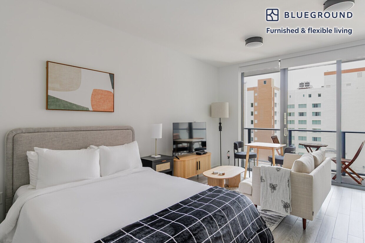 Feel at home wherever you choose to live with Blueground. You’ll love this stylish Downtown Miami furnished studio apartment with its modern decor, fully equipped kitchen, and exquisite living room. Ideally located, you’re close to all the best that Miami has to offer! (ID #MIA132) The advertised rate of $2,700/month is the lowest available price, based on a 4 month(s) and 10 day(s) stay with a move-in date of April 4, 2032. If you’re looking for a 1-year stay, the rate is $3,550/month. Rates vary depending on the duration of stay, season, and other parameters. For exact pricing and additional pricing components, please visit our website and enter your desired move-in and move-out dates. The rate is applicable when billed upfront; it can be higher if billed in multiple payments. Brokers are welcome to reach out. Were you looking for an unfurnished lease? Try Blueground instead and upgrade from unfurnished to furnished living: - Furnished at rates comparable to unfurnished - No setup or furniture costs - save thousands - Move-in ready - save time, just bring your suitcase Designed with you in mind Thoughtfully designed with bespoke finishes, modern furnishings, and a fully equipped kitchen, you’ll enjoy that “I’m home” feeling with this Blueground apartment. Whether you’re lounging in your cozy living room streaming the latest and greatest entertainment on the smart TV or premium wireless speaker, or getting some well-earned rest on the superior quality mattress with fully stocked linens, you’ll fall in love with everything this Downtown Miami apartment has to offer. This apartment also offers in-apartment laundry. Sleeping arrangements Queen Bed, 63in/160cm Amenities Building amenities unique to this studio apartment include an on-site: - Doorman - Dryer - Elevator - Swimming pool - Washing machine - Lounge - Parking - Pets allowed - Rooftop BBQ Arrival and ongoing support The entire apartment is yours to enjoy! Throughout your stay, you’ll have access to our Client Experience team through the Blueground App. You can schedule additional cleanings, submit maintenance requests, and view our neighborhood recommendations with just a few taps. We’ll share all details upon confirmation of your stay. Other things to note Building amenities may have an extra cost. This Blueground apartment has flexible lease options, allowing you to book it for one month, a year, or more. Pets are welcome, though weight limits and breed restrictions apply and may incur fees. Parking is offered based on availability and is subject to a fee. We take great pride in ensuring every photo displayed is shot in our own units with our actual furnishings. That said, we regularly refresh our decor and furniture arrangement, which may differ from what’s pictured. Also note - This apartment is located on a busy street - Ongoing construction in close proximity; construction sounds may occasionally be heard - This is a guarded building equipped with a doorman/concierge at all times [SI]