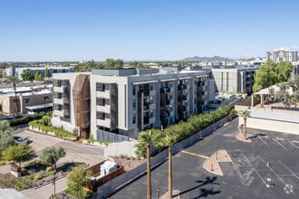 Contour on Campbell, completed in 2018, stands as a contemporary addition to Phoenix's Biltmore District. This four-story condominium, designed by Gould Evans Architects, houses 111 units that blend seamlessly into the vibrant neighborhood. The building's modern design features a mix of smooth facade panels and contrasting rust-colored vertical elements, creating a distinctive presence in the area. Situated at the intersection of urban convenience and residential comfort, Contour on Campbell offers residents a prime location to experience the best of Phoenix living.