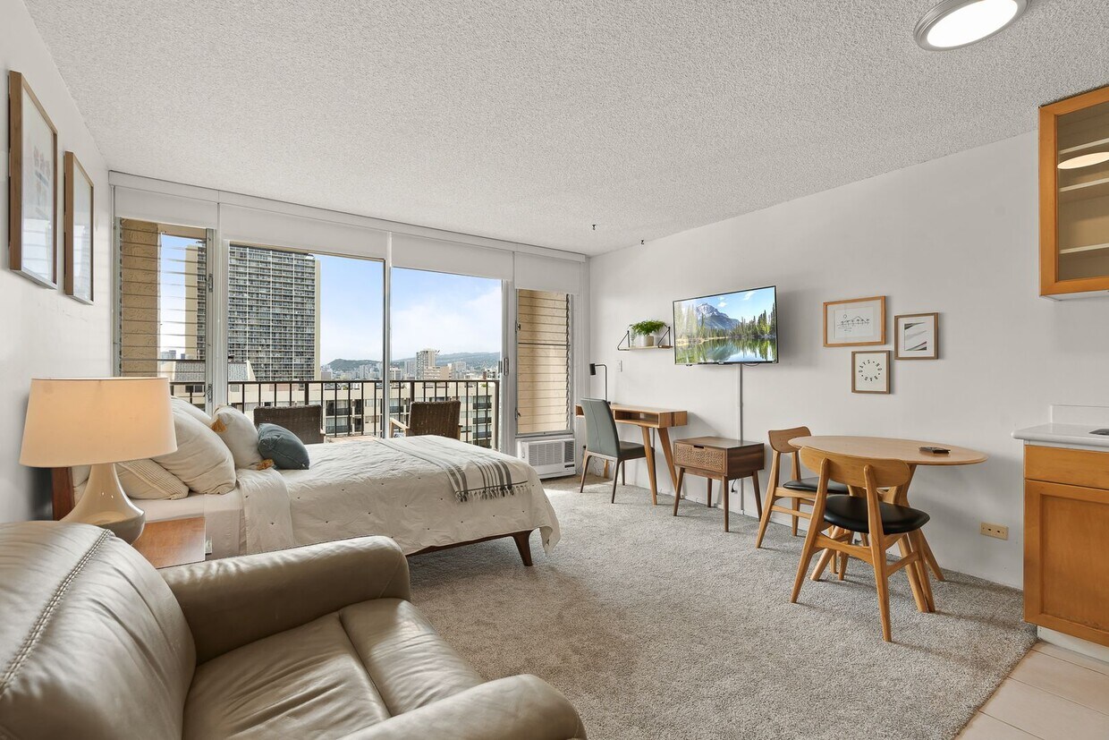 Available on December 5th! Fully furnished studio / 1 bathroom / 1 assigned covered parking and washer dryer in the unit, all in the heart of Waikiki. Unwind on the lanai and take in the Ala Wai, city, mountain and partial ocean views. Wonderful amenity deck featuring sauna, pool, bbq grills and a gathering space to take in the beautiful views. Tenant pays: Electricity, internet and renters insurance required for duration of lease term. Utilities included: Cable TV, water/sewer. $25 application fee per applicant, anyone 18 and over must apply. NO SMOKING, e-cig, vape, and any other in the unit or on the property. TO SCHEDULE A SHOWING: Text or Call or email -Viewed in person by all Tenants/Occupants preferred -Application instructions will be provided at showing