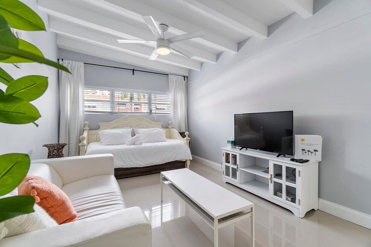 The advertised rate of $2,776/month is the lowest available price, based on a 30 day(s) stay with a move-in date of May 10, 2026. Rates vary depending on the duration of stay, season, and other parameters. For exact pricing and additional pricing components, please visit our website and enter your desired move-in and move-out dates. The rate is applicable when billed upfront; it can be higher if billed in multiple payments. Welcome to the Coconut room at Palm Paradise Inn, the perfect spot for a quick getaway in Sunny South Florida. This one-bedroom apartment is just a 5-minute walk from Fort Lauderdale Beach and offers a fully stocked kitchen, a king-size bed in the bedroom, and two single beds in the living room, comfortably sleeping four guests. Enjoy the shared pool and large backyard outdoor space, complete with lounge chairs, outdoor seating, and a fire pit. The Coconut unit features a full kitchen and a cozy living room, providing a comfortable space for relaxation. The shared outdoor area includes multiple seating and lounge areas, as well as a grill for the ultimate cookout experience. Enjoy floating in the pool or take a short walk to the beach with provided beach chairs. Pets are welcome with a fee of $125 per stay. We kindly ask that pets are kept out of the pool and off the furniture, with crate-trained pets preferred. Free parking is available for guests, and a washer and dryer are located behind Unit 2 for your convenience. Located in the vibrant North Fort Lauderdale Beach area, this apartment is just a 5-minute drive from the famous Fort Lauderdale Beach and a 10-minute drive to Lauderdale by the Sea. The neighborhood is walkable and bikeable, with nearby attractions like Cafe Martorano and Coral Ridge Mall, which is a 7-minute drive away. While a car is recommended for exploring further, local amenities are easily accessible on foot or by bike. This property consists of three units, with the backyard, grill, and pool being shared spaces. The apartment is private and exclusive to you. No parties, no smoking, and no unregistered guests are allowed on the property. Exterior cameras are installed for safety, and the pool temperature is subject to ambient conditions. The primary guest must be at least 25 years old to book this property. [SI]