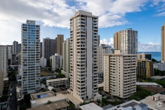 Waikiki Skytower, a 30-story condominium completed in 1978, stands as a prominent fixture in the vibrant Waikiki neighborhood. With 400 units, this high-rise offers residents a prime location just blocks from the world-famous Waikiki Beach. The building's simple, modern design features a rectangular shape with a series of balconies adorning its facade, allowing residents to take in the surrounding views of the ocean, mountains, and cityscape.