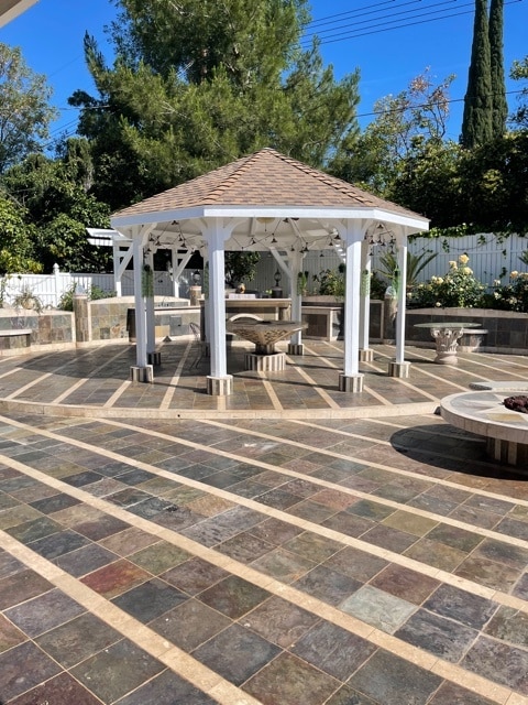 Welcome to paradise! On an oversized corner lot in one of the best parts of Woodland Hills sits this incredible home, full of beauty and utility. The main house has four bedrooms , a massive kitchen , travertine floors throughout, along with high ceiling and lots of natural light. Three separate entrances lead to the backyard oasis, where you'll find the impressive barbecue, two fire pits and relaxing hot tubs.The attached guest house contains two more bedrooms and full bath, kitchen, as well as its own laundry and entrance>