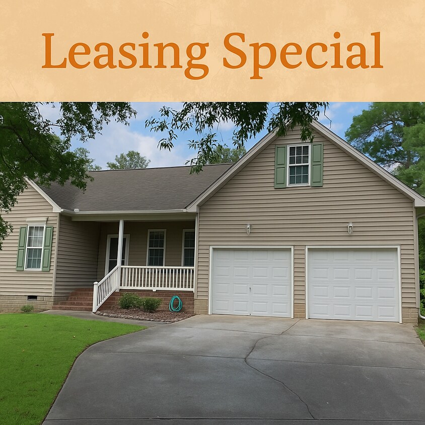 *$500 off First Months Rent* Beautiful 4Bd/2BA home available Enjoy an open floor plan with hardwood flooring in the kitchen, dining and great room and carpeted bedrooms. All bedrooms have spacious closets and ceiling fans. Entertain in the spacious kitchen that has UPDATED cabinets, UPDATED appliances, lots of counter space and bar seating. Relax in the large great with vaulted ceilings a wood burning fireplace and built in shelving. French doors lead out to a large deck and screened in porch great for grilling and enjoying time with friends and family over looking a private expansive back yard. Take advantage of a large garage with extra storage and bonus room over top. This home is a must see!