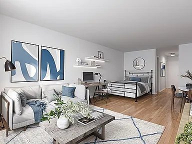 This top-floor, move-in-ready residence in a classic elevator building offers ultimate living flexibility with no minimum occupancy requirements, no fees, and easy renewal options. Thoughtfully designed with ample storage, it includes two large closets and versatile spaces for dining, lounging, and relaxing. The kitchen is equipped with full-sized appliances, while the bathroom features a soaking tub and a spacious vanity. Overlooking a beautifully landscaped courtyard, this home provides a tranquil retreat amidst the city. The building is staffed with a 24-hour doorman and live-in superintendent and includes a private courtyard and a convenient on-site laundry room. Ideally located in a vibrant downtown neighborhood, it offers seamless access to the F/M/L/4/5/6/N/Q/R/W and 1/2/3 subway lines, with Union Square just around the corner.