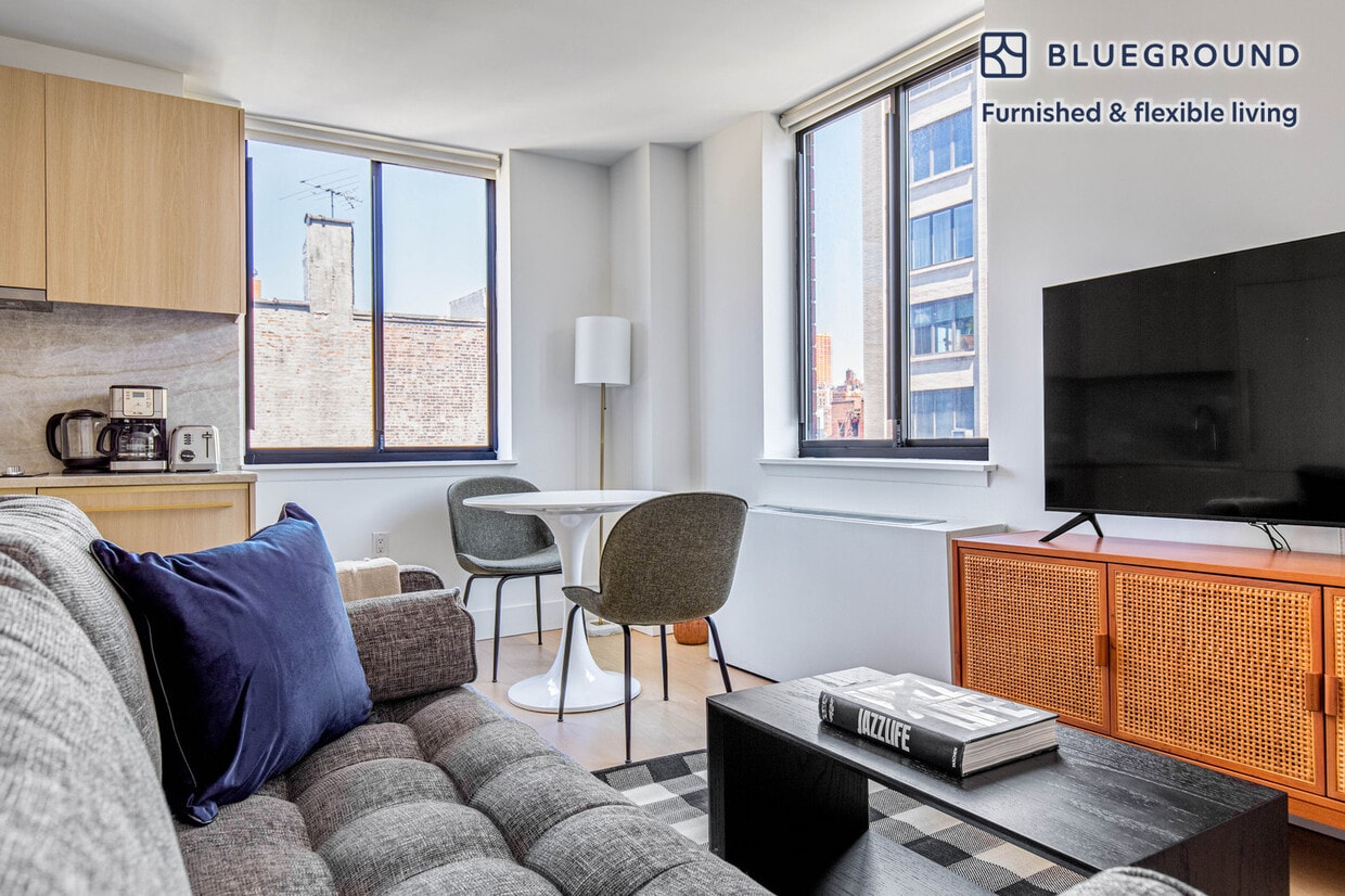 Feel at home wherever you choose to live with Blueground. You’ll love this sophisticated Chelsea furnished one bedroom apartment with its modern decor, fully equipped kitchen, and stylish living room with great views. Ideally located, you’re close to all the best that New York has to offer! (ID #NYC609) The advertised rate of $6,150/month is the lowest available price, based on a 12 month(s) stay with a move-in date of April 1, 2026. Rates vary depending on the duration of stay, season, and other parameters. For exact pricing and additional pricing components, please visit our website and enter your desired move-in and move-out dates. The rate is applicable when billed upfront; it can be higher if billed in multiple payments. Brokers are welcome to reach out. Were you looking for an unfurnished lease? Try Blueground instead and upgrade from unfurnished to furnished living: - Furnished at rates comparable to unfurnished - No setup or furniture costs - save thousands - Move-in ready - save time, just bring your suitcase Designed with you in mind As with any Blueground apartment, you’ll find a thoughtfully designed space complete with beautiful furniture and a fully equipped kitchen in this one bedroom property. And, thanks to our superior quality mattresses, fully stocked linens, and towels, you can relax knowing you’ll always feel comfortably at home. When you’re ready for some fun, you can take in the New York vibes or bring the entertainment to you with the premium wireless speaker or smart TV. Sleeping arrangements Queen Bed, 63in/160cm Amenities Building amenities unique to this one bedroom apartment include an on-site: - Doorman - Dryer in building - Elevator - Washing machine in building - Lounge - Pets allowed - Rooftop BBQ Arrival and ongoing support The entire apartment is yours to enjoy! Throughout your stay, you’ll have access to our Client Experience team through the Blueground App. You can schedule additional cleanings, submit maintenance requests, and view our neighborhood recommendations with just a few taps. We’ll share all details upon confirmation of your stay. Ideally Located This furnished apartment is located in Chelsea, one of the city’s trendiest neighborhoods. Considered an artistic and creative center, there are over 200 galleries to discover. Ranging from classical to experimental art, there is something for every taste. Take a stroll through the High Line park for a unique perspective and a breath of fresh air. What used to be a railroad, now provides stunning views of Manhattan’s architecture. This area is also known for its various fine dining options and hip nightlife. From Chelsea, JFK Airport is just 30 minutes away by car. Other things to note Building amenities may have an extra cost. This Blueground apartment has flexible lease options, allowing you to book it for one month, a year, or more. Pets are welcome, though weight limits and breed restrictions apply and may incur fees. Brokes CYOF. We take great pride in ensuring every photo displayed is shot in our own units with our actual furnishings. That said, we regularly refresh our decor and furniture arrangement, which may differ from what’s pictured. [SI]