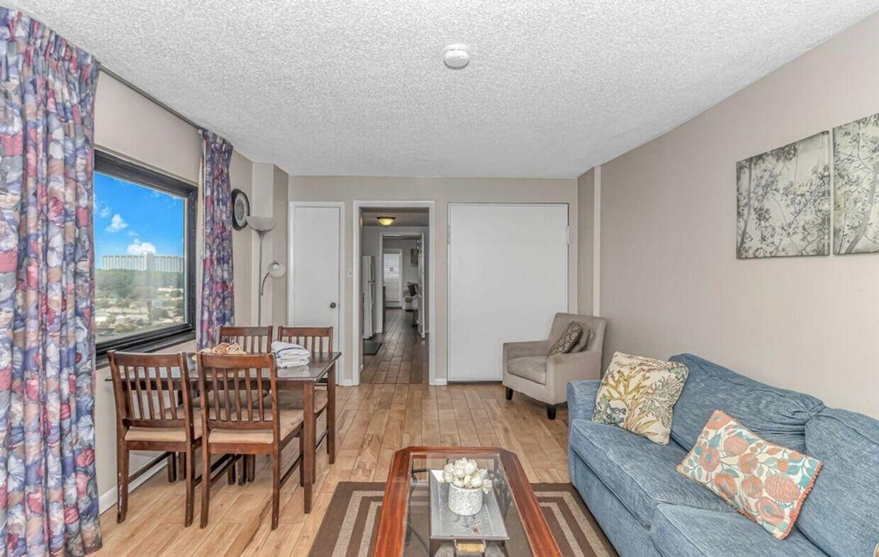 Enjoy a relaxing beachfront escape in this oceanfront 1-bedroom condo, perfectly designed to accommodate up to 4 guests. Feel at home as you wake up to breathtaking ocean views and step onto your private balcony to enjoy the sea breeze and the soothing sound of the waves. The condo features a comfortable bedroom, a welcoming living area, and a fully stocked kitchen equipped with everything you need to prepare meals at home. Relax and unwind with access to both indoor and outdoor pools, as well as a shared hot tub. The beach is just steps away, providing endless opportunities for sunbathing, swimming, and beachcombing. This condo also features air conditioning, internet/Wi-Fi, and a smart TV. Car parking is available in the designated Palm Resorts parking garage across the street, with free parking for 2 cars. Convenience is at your fingertips, whether you’re enjoying breakfast before the beach or a cozy dinner in. Local attractions include WonderWorks, one of the largest amusement parks in the area, Myrtle Beach Sky Wheel, Myrtle Waves Water Park, Family Kingdom Amusement Park, Dragon's Lair at Broadway at the Beach, Jurassic Golf, Jungle Safari, Captain Hook's Adventure courses, Nascar SpeedPark, Brookgreen Gardens, and Championship Golf. A new pier is currently under construction near the property and is expected to continue through some time in 2026. While every effort is being made to minimize disruption, occasional noise or limited access to certain areas may occur. The city is currently working on the pipes in the ocean, which may result in loud noise most of the time. Grilling is prohibited and any violation of this policy will incur a $200 fine. Bicycles, motorcycles, mopeds, and trailers are not allowed. Smoking is prohibited in the unit/house as well as the balcony and any violation of the smoking policy will incur a $250 fine plus the cleaning costs necessary to remove smoke odors from the unit/house and/or linens. Pets are not allowed and any violation of this policy will incur a $200 fine. Gatherings of more than 4 people including both overnight guests and visitors are not allowed and may be subject to eviction. House parties and illegal substances are strictly prohibited and grounds for immediate eviction. You must be at least 21 years old to book this property. Leaving the unit later than the check-out time will incur a late check-out penalty starting from $500. Quiet Hours are from 10:00 PM – 8:00 AM. For same day late check-ins, you need to get approval before booking. A state identification card or driver license copy will be requested upon booking. The living room is furnished with a Murphy bed. [SI]