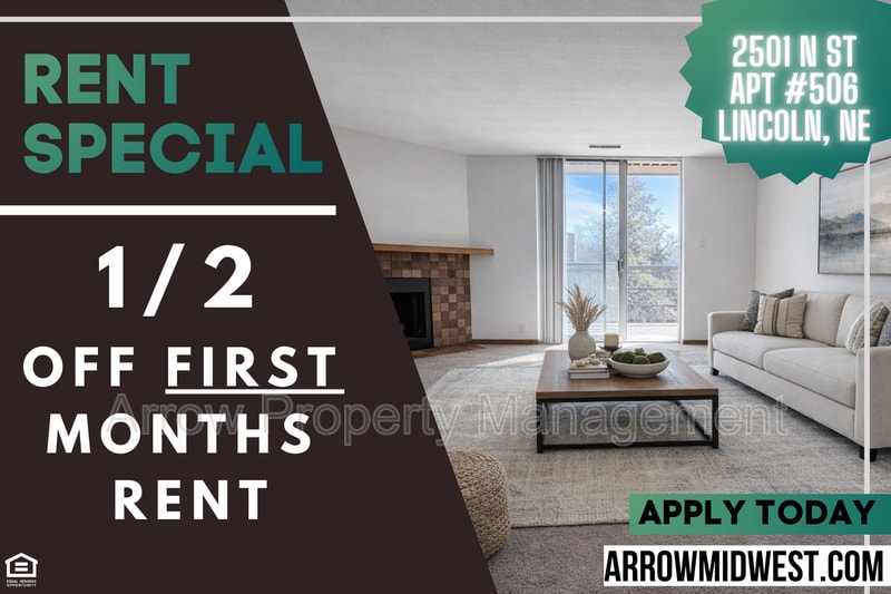 Welcome to 2501 N Street apartment #506, our spacious 1-bedroom, 1-bathroom apartment located in Lincoln, NE. This charming unit features a large balcony perfect for enjoying the fresh air. With off-street parking, a dishwasher, shared laundry facilities, central A/C, and elevator access, convenience is at your fingertips. Enjoy the community clubhouse with billiards for entertainment and relaxation. Don't miss out on this fantastic opportunity to call this apartment home. Visit to apply and schedule a showing. Additional information- Pets negotiable with a $150 non-refundable pet deposit and monthly fee per pet. Tenant to pay a $75/month fee for Common services which includes internet. The tenant shall be responsible for paying a monthly utility fee, calculated on a ratio utility billing system (RUBS), to cover the usage of gas, water and electricity. All Arrow Property Management residents are enrolled in the Resident Benefits Package (RBP) for $30.00/month which includes liability insurance, credit building to help boost the resident’s credit score with timely rent payments, our best-in-class resident rewards program, and much more! More details upon application. Amenities: dishwasher, large balcony, off-street parking, ceiling fans