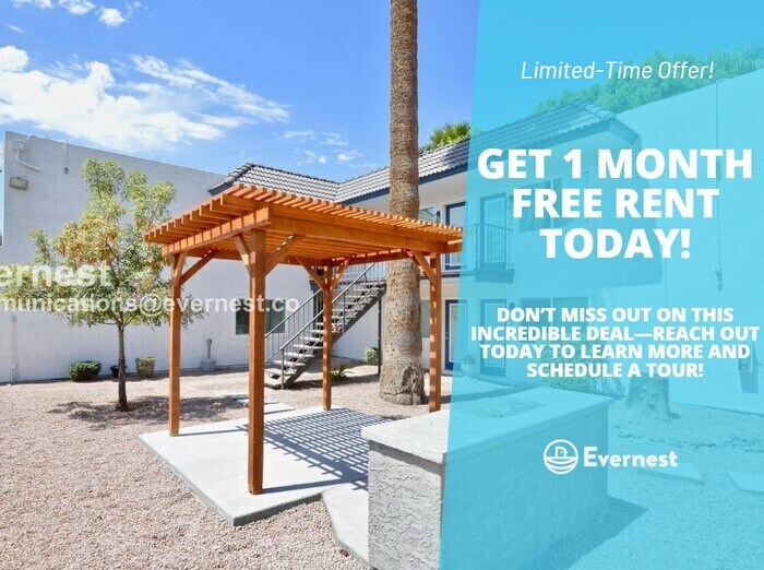 Get 1 Month FREE Rent today! Don't miss this opportunity to save big on your new home—limited-time offer. Discover this inviting 1-bedroom, 1-bathroom apartment boasting 700 sq ft of comfortable living space. - Refrigerator, garbage disposal, microwave, and electric range - Stainless steel appliances and Stone countertops - Central cooling, Ceiling fans - Off-street parking available Neighborhood Perks: Close proximity to AZ-202 and situated on Cross Cut Canal Park for easy access to outdoor activities. Pets: Yes to dogs and cats, 2 max. $75 water/sewer/trash. Residents are responsible for all utilities. Application; administration and additional fees may apply. Pet fees and pet rent may apply. All Tenants are required to enroll in Landlord Property Coverage ($15/mo). A security deposit will be required before signing a lease. Contact your leasing agent for more information The first person to pay the deposit and fees will have the opportunity to move forward with a lease. You must be approved to pay the deposit and fees. Beware of scammers! Please contact Evernest Property Management at before leasing. Evernest will never request you to pay with Cash App, Zelle, Facebook, or any third party money transfer system Contact us to schedule a showing.