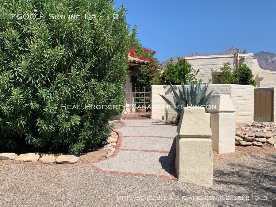 ---- SCHEDULE A SHOWING ONLINE AT: http://showmojo.com/lac/9fe5e810e3 ---- Relax and enjoy this 2bed/2bath home tucked away in the Catalina Foothills Condominiums. Beautiful gated courtyard with fountain and citrus tree welcomes you to serenity! Spacious open living area with fireplace and window wall. Formal dining room. Eat-in kitchen is complete with double stove, gas range, and plenty of cabinet space. Both bedrooms include private bathrooms and master has fireplace. Gorgeous Satillo tile throughout. A/C. Spectacular Community Pool. WASHER/DRYER in unit, as well as Laundry room on site. 2 assigned parking spaces, one by the unit and the other around the side, also has storage/shed by carport area. Minimum year lease. This one won't last long! Call/text 520-505-5664 or email leasing@rpmrincon.com Assigned Covered Parking Community Pool Disposal Fridge On Site Laundry Patio Covered Pets Allowed Washer/Dryer In Unit