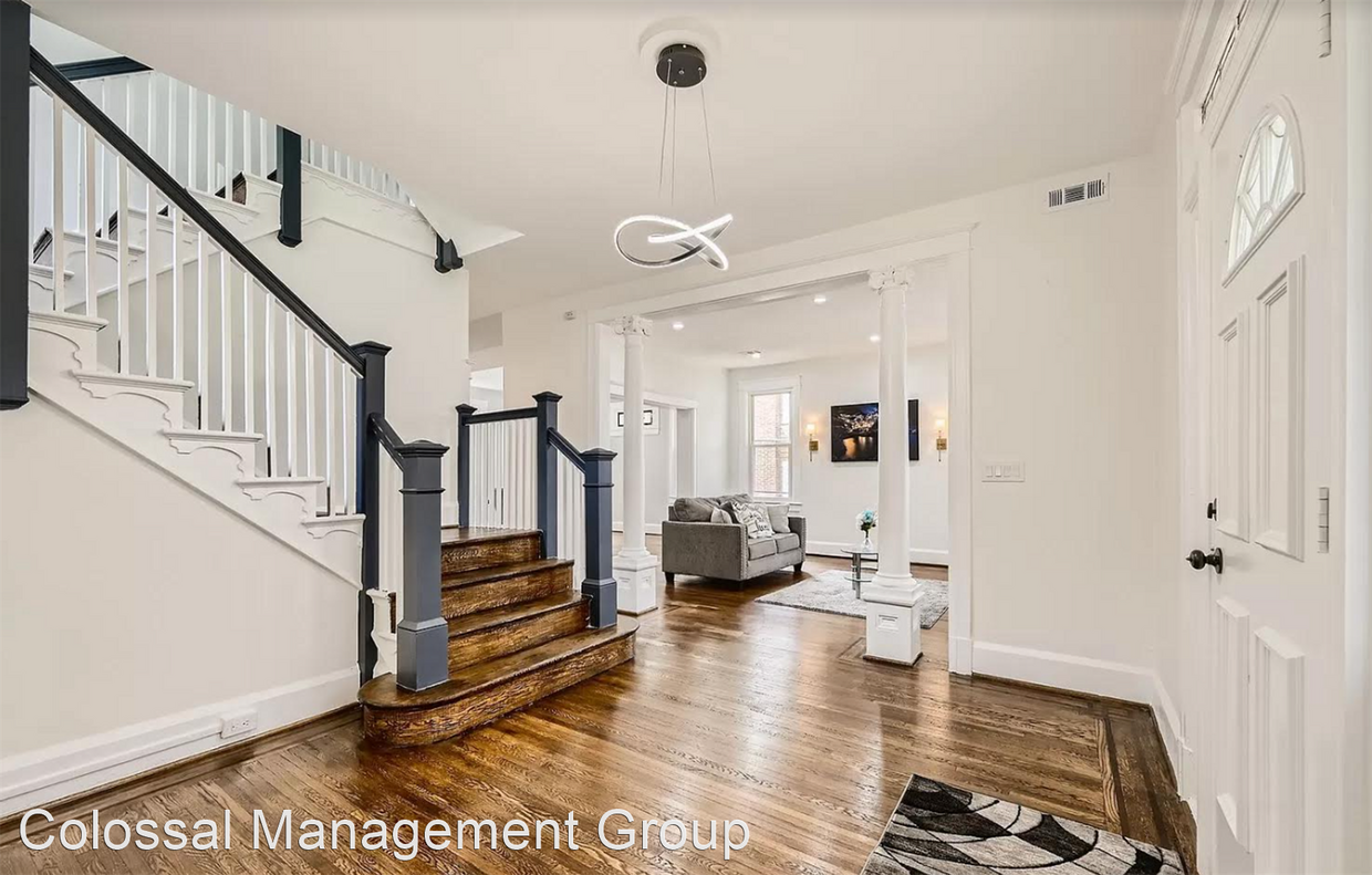 - Magnificent 6 Bedroom Single Family Rental With A Finished Basement and Garage - Welcome the 2707 Roslyn Ave; 3,000 sq ft single family colonial home located in the quiet neighborhood of Garwyn Oaks! This home features 6 bedrooms, 3.5 bathrooms and a beautiful, partially finished basement. Features include: wide brick steps onto the covered, front wrap-around porch. There are four floors of stunning living space filled with tons of original character beginning with original hardwood floors with an inlay design, high ceilings, broad moldings and colossal columns. An original stained-glass window is in the foyer leading to the oversized living room beams with an abundance of natural light. The first floor space is open and offers view into the dining room and kitchen. The large dining room is separated from the kitchen by a lovely breakfast bar with seating and high end lighting fixtures. The spacious kitchen features shaker cabinets, stainless steel appliances, stunning quartz countertops and a walk-in pantry. This floor has also has a half bath. On the second floor is a primary suite complete with his & hers closets, plus a private ensuite featuring a beautifully tiled walk-in shower, a jetted soaker tub, and double vanities. Additionally, there is a door to a private enclosed balcony with stairs to the yard from this room. Two additional large bedrooms plus a full bath which complete floor two. Up one more flight of stairs to find three more large bedrooms and another full bath. The basement level has a large additional living space for another bedroom, a family room, office, play area or rec room. There is also a side door which leads to the driveway and semi fenced yard with a detached two car garage. From the kitchen step out onto a covered porch overlooking the abundance of green space that is waiting to become your backyard oasis. This home is move-in ready and is the perfect home for a growing family or extended family. Schedule your rental tour today; TEXT 1) your name 2) email and 3) Roslyn to . (RLNE7921102) Other Amenities: Other (two fridges, three w/d sets). Appliances: Range, Microwave.