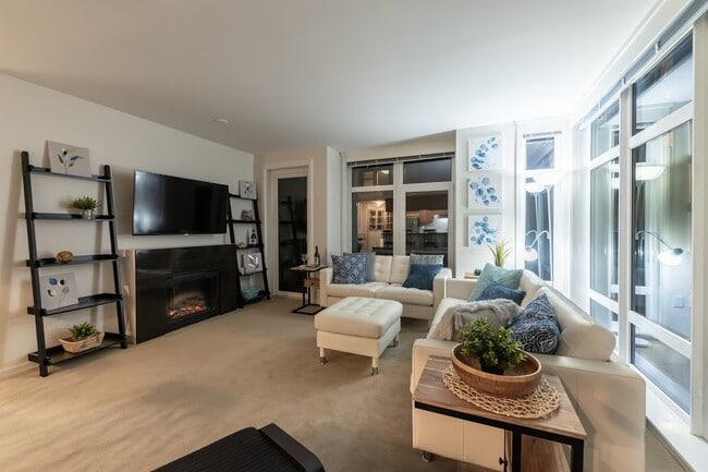 721 SF 1BR 1BA southwest corner unit in Belltown’s Avenue One Condominiums. Featuring cozy electric fireplace, floor-to-ceiling windows, high ceilings, abundant natural light, and TWO decks with terrace, water and Olympic views. Kitchen and bath have granite countertops, and kitchen has stainless steel appliances, 6 burner gas range with warming oven. In-unit full size stackable W/D, slate flooring in entry, kitchen and bathroom. Controlled access building with concierge service, fitness center, community room and courtesy guest suite. Rooftop deck boasts 360 degree views of Elliott Bay, Olympics, Space Needle, Seattle skyline and waterfront, as well as seating for 20 and two barbeque grills. Walk Score of 97, cycle-friendly and close to major bus lines. Move in: $2025 deposit (ref), HOA Move-in fee (non-ref), key/fob deposit (ref). Minimum 12 month lease. Screening/background check, proof of funds required. Furnished option available. Pets on case-by case basis. Features - City, courtyard and Elliott Bay views from unit - TWO Patio/balconies in-unit - Full size washer and dryer - Slate flooring in hallway, kitchen, bath - Floor-to-ceiling windows with TDBU cellular shades - Smart thermostats RENT INCLUDES: Utilities: (water, garbage, gas) Tenant pays electricity & wifi Elevator Club/community room access Rooftop deck access Fitness center access Courtyard access Full service concierge/front desk Secure entry 24/7 1 secure underground parking space Community Amenities - On-site management - Bicycle storage onsite - Pet friendly - Controlled access garage - Open co-work spaces - 24/7 state of the art fitness center – with integrated cardio theater/TVs - 24/7 on call maintenance - Smart package room - Controlled access community - Two lounges – main floor and rooftop - Outdoor courtyard - Unique rooftop deck that includes two grills and seating for up to 20