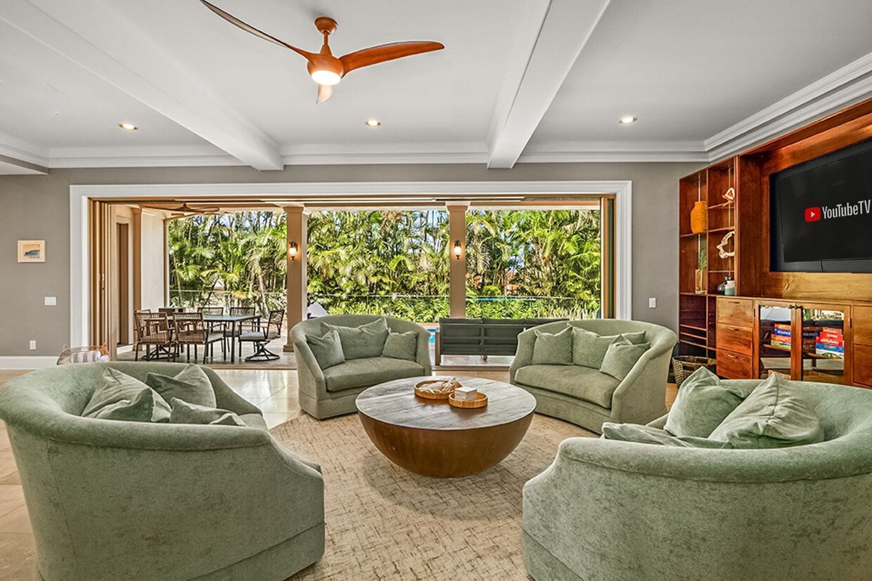 The advertised rate of $35,186/month is the lowest available price, based on a 30 day(s) stay with a move-in date of August 22, 2026. Rates vary depending on the duration of stay, season, and other parameters. For exact pricing and additional pricing components, please visit our website and enter your desired move-in and move-out dates. The rate is applicable when billed upfront; it can be higher if billed in multiple payments. Aloha! Feel at home in this centrally located Hawaiian home in Poipu. This villa offers 5 bedrooms and 3.5 bathrooms, providing the perfect way to explore beautiful Kauai. This expansive 3,400+ sq. ft. villa offers plenty of space for families and large groups seeking open-concept indoor/outdoor living and relaxing aloha vibes. The open-concept chef’s kitchen is fully equipped for preparing island-inspired meals and includes a Sub-Zero refrigerator, a new under-counter ice maker, a 5-burner gas range, a BBQ lanai, a breakfast bar, 2 sinks, and all essential appliances. You’ll also find a chilled wine room for your favorite sips. The home is cooled by 6 air-conditioning units and ceiling fans throughout. Includes high-speed Wi-Fi, 5 smart TVs, 2 sets of washers and dryers, luxury Tommy Bahama linens on every bed, beach chairs, boogie boards, beach towels, a beach cart, beach toys, a beach tent, beach umbrellas, and snorkeling and swimming gear. Pets are allowed for a $500 fee. Located in Kiahuna Golf Village in Poipu-Koloa, Kauai, this home is just minutes from world-renowned beaches like Poipu Beach, Brennecke’s, and Shipwreck Beach and close to top-dining spots at The Shops At Kukui‘ula and The Grand Hyatt Resort. Enjoy nearby access to scenic hiking trails, including Maha‘ulepu Heritage Trail, surfing, snorkeling, and paddleboarding. Frequent sea turtle and monk seal sightings occur along the nearby shoreline. It is centrally located for exploring Old Koloa Town, a charming historic sugar plantation village, and situated near Kiahuna and Poipu Bay Golf Courses for stunning ocean-view rounds. Farmers markets, boutique shopping, and local art galleries are just a few minutes away. Please make sure to turn off the AC during the day when you are not in the home to conserve Kauai energy. Please don't feed the koi anything but their fish food. Hawaii Laws require that GET (4.712%), Kauai TAT (3.0%) and TAT (10.25%) taxes apply to the cleaning fee. Registration Number: ta--02 [SI]