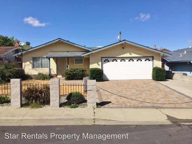 (707) 447-9411 - 3 BEDROOM VACAVILLE W/ POOL *STAR RENTALS - - 3 BEDROOM 2 BATH W/ POOL! - 1,528 SQ. FT. HOME - MODERN UPDATED HOME - ONE STORY - 2 CAR GARAGE W/ ADDITIONAL STORAGE - PAVER DRIVEWAY W/ ROOM FOR BOAT/RV - DUAL PANE WINDOWS & SLIDERS - SEPARATE FAMILY/LIVING ROOMS - HARDWOOD FLOORS THROUGHOUT - FRONT SECURITY DOOR - LARGE BEDROOMS W/ CEILING FANS - MODERN KITCHEN FEATURES; NEW CABINETRY, NEWER MATCHING APPLIANCES, NEWER TILE FLOORS, DOUBLE SINK, NEWER FIXTURES, BREAKFAST NOOK, NEWER CEILING FAN, MODERN COUNTERTOPS, BAY WINDOW, - FAMILY ROOM FEATURES; NEW HARDWOOD FLOORING, EXPOSED BEAM CEILING, CEILING FAN, ROCK FACED FIREPLACE W/ INSERT, SLIDER TO BACKYARD - HALL BATH FEATURES; TILE FLOORS, NEWER VANITY, NEWER TOILET, MODERN TILED SHOWER, UPDATED CABINETRY - MASTER BATH FEATURES; TILE FLOORS, NEWER TOILET AND VANITY - LANDSCAPED BACKYARD FEATURES; LARGE POOL, TILED PATIO W/ OVERHANG, STAMPED CONCRETE AROUND POOL, NEWER FENCING - NO PETS!! No Pets Allowed (RLNE3426631) Pet policies - No Dogs Allowed, No Cats Allowed.