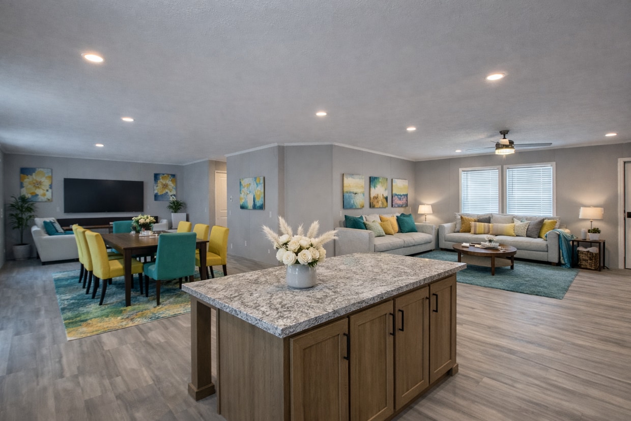 Love to host and entertain. This is the home for you. Welcome to a stunning 3 bedroom, 2 bathroom home offering 1456 sq ft of beautifully designed living space. The heart of the home is the kitchen, featuring an extra large island with storage and room for seating. It perfectly separates the main living room from a spacious secondary area ideal for a dining room, rec room, or second living space. The open layout is perfect for gatherings and everyday living. The primary bedroom is a private retreat with a walk in closet and a spa like bathroom, thoughtfully located on one end of the home. The additional two bedrooms and main bathroom are on the opposite end, offering comfort and privacy for everyone. Additional highlights include a laundry room with washer and dryer hookups, central air, a private drive, and a shed. This brand new home is completely move in ready. Some photos have been virtually staged to help showcase the homes potential. Discover your dream home at Carriage Way in Chesterfield, MI. Enjoy convenient access to the Hall Road M 59 corridor with premier shopping, dining, and amenities nearby. The community offers a clubhouse, banquet facilities, pet friendly spaces, a playground, open green areas, and a sparkling swimming pool. Top rated schools and the parks of Anchor Bay are just minutes away. Schedule your tour today and experience the lifestyle waiting for you at Carriage Way.