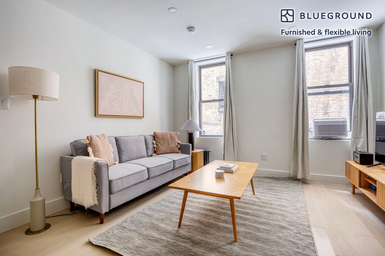 Show up and start living from day one in New York with this comfortable one bedroom Blueground apartment. You’ll love coming home to this thoughtfully furnished, beautifully designed, and fully equipped Chelsea home. (ID #NYC1448) The advertised rate of $5,420/month is the lowest available price, based on a 1 month(s) and 29 day(s) stay with a move-in date of February 1, 2027. If you’re looking for a 1-year stay, the rate is $5,700/month. Rates vary depending on the duration of stay, season, and other parameters. For exact pricing and additional pricing components, please visit our website and enter your desired move-in and move-out dates. The rate is applicable when billed upfront; it can be higher if billed in multiple payments. Brokers are welcome to reach out. Were you looking for an unfurnished lease? Try Blueground instead and upgrade from unfurnished to furnished living: - Furnished at rates comparable to unfurnished - No setup or furniture costs - save thousands - Move-in ready - save time, just bring your suitcase Designed with you in mind As with any Blueground apartment, you’ll find a thoughtfully designed space complete with beautiful furniture and a fully equipped kitchen in this one bedroom property. And, thanks to our superior quality mattresses, fully stocked linens, and towels, you can relax knowing you’ll always feel comfortably at home. When you’re ready for some fun, you can take in the New York vibes or bring the entertainment to you with the premium wireless speaker or smart TV. This apartment also offers in-apartment laundry. Sleeping arrangements Queen Bed, 63in/160cm Amenities Building amenities unique to this one bedroom apartment include an on-site: - Dryer - Elevator - Washing machine - Pets allowed Arrival and ongoing support The entire apartment is yours to enjoy! Throughout your stay, you’ll have access to our Client Experience team through the Blueground App. You can schedule additional cleanings, submit maintenance requests, and view our neighborhood recommendations with just a few taps. We’ll share all details upon confirmation of your stay. Ideally Located This furnished apartment is located in Chelsea, one of the city’s trendiest neighborhoods. Considered an artistic and creative center, there are over 200 galleries to discover. Ranging from classical to experimental art, there is something for every taste. Take a stroll through the High Line park for a unique perspective and a breath of fresh air. What used to be a railroad, now provides stunning views of Manhattan’s architecture. This area is also known for its various fine dining options and hip nightlife. From Chelsea, JFK Airport is just 30 minutes away by car. Other things to note This Blueground apartment has flexible lease options, allowing you to book it for one month, a year, or more. Pets are welcome, though weight limits and breed restrictions apply and may incur fees. Brokes CYOF. We take great pride in ensuring every photo displayed is shot in our own units with our actual furnishings. That said, we regularly refresh our decor and furniture arrangement, which may differ from what’s pictured. [SI]