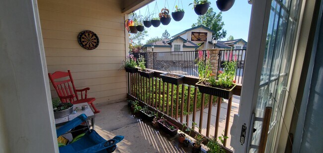 Welcome home! Gorgeous views abound from this 2nd floor condo with vaulted ceilings. So much to appreciate and enjoy with new carpet, plank flooring, and paint. Primary bedroom features walk-in closet, private bathroom with double sinks and large tub. 2nd bedroom has great space and 2 closets. Laundry area with washer and dryer included. Spacious living room with cozy gas fireplace and glass doors to patio. Exterior locked storage, garage, and central AC all included. Neighborhood pool, close to campus, hiking and biking trails.