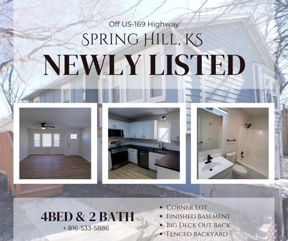 Spacious 4 bedrooms and 2 full baths home located on S Franklin St in Spring Hill, conveniently near US-169 Highway. This home features VPL flooring, a finished basement, and stairs leading to the front entrance for added character. The kitchen is spacious with abundant cabinet storage and comes equipped with STOVE, REFRIGERATOR, MICROWAVE, and DISHWASHER. Bedrooms offer additional closet space and storage throughout the home. Additional features include an attached finished 2-car garage, washer/dryer hookups, central heating AC, and a corner lot with a large deck and fenced backyard, perfect for outdoor enjoyment. Rent $2,500.00 - $2,500.00 Security Deposit We will require tenants who will take care of the property and treat and care for the property as their own. ****LEASE IS REQUIRED***** Small dog MAY be considered with a $25.00 monthly pet rent and pet screening. If a dog is allowed, the dog will need to be on a leash whenever outside and yard waste cleaned up at all times. 1 small dog under 20 lbs could be allowed with $25.00 per month pet rent and $300.00 NON Refundable PET FEE. Serious Applicants ONLY! Anyone over the age of 18 living at the property must put in a application. Property is RENTED AS-IS. No other improvements will be made. The tenant is responsible pays all utilities, electric, gas, sewer water. Tenant will provide and maintain renters insurance, general care and general maintenance, i.e., smoke detectors batteries, light bulbs, co2 monitor batteries, filter changes, and maintaining the property as there will be 2 property inspections per year to make sure the tenant is in lease compliance. Tenant is responsible for lawn, snow, trash and all utilities. ***NO SMOKING of ANY KIND IS ALLOWED INSIDE THE PROPERTY*** Property is RENTED AS-IS. We are looking for a long term tenant to take great care of our beautiful home. View our website at CALL or TEXT now to schedule a showing with a leasing agent. ***** We will never ask you for a deposit or rent before you have viewed the property.*** Anyone who would be living in the property 18 and over is required to submit their application. Application Fee is $47.00 per person. All applicants are welcome to apply. The landlord does not discriminate based on source of income. Call for application. All application fees are NON Refundable. Once application is approved a non refundable reservation fee is required to take property off the market and hold it for your move in date that is to be within 30 days of your approved application. Avoid SCAMS, we do NOT advertise on Craigslist or FACEBOOK Market place. You will speak and meet with a leasing assistant!